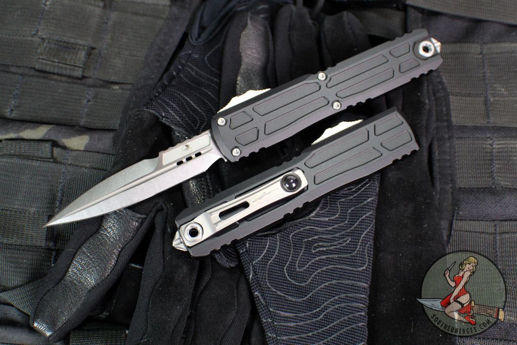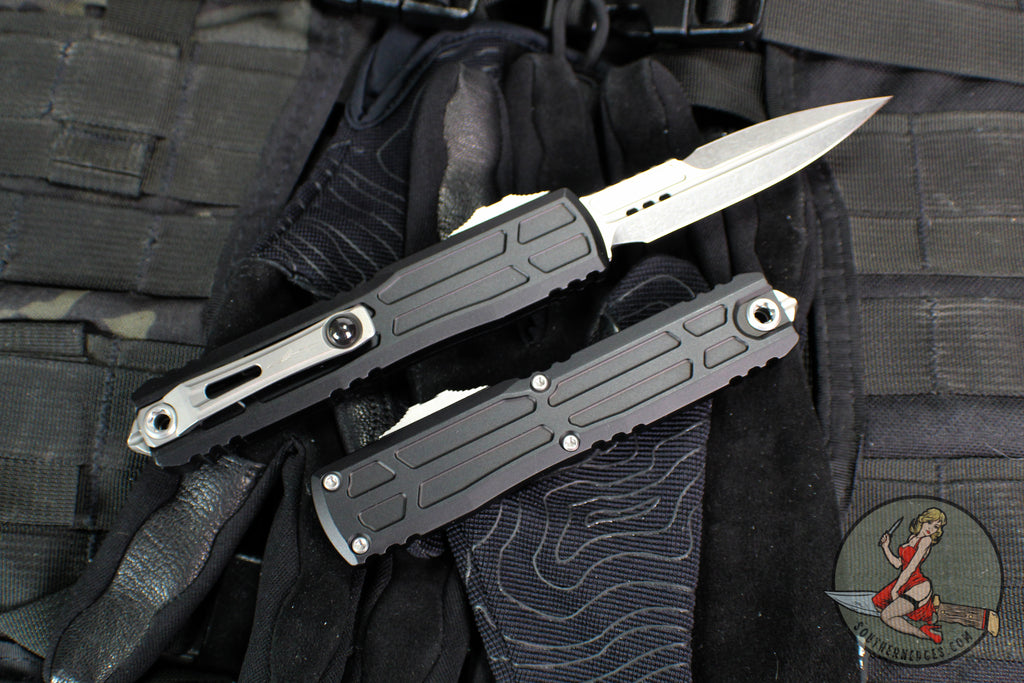 Microtech Ultratech ZBP Zero Blade Play OTF Knife- EX Series- Bayonet Edge- Black Handle- Stonewash Blade 1120EX-10 S