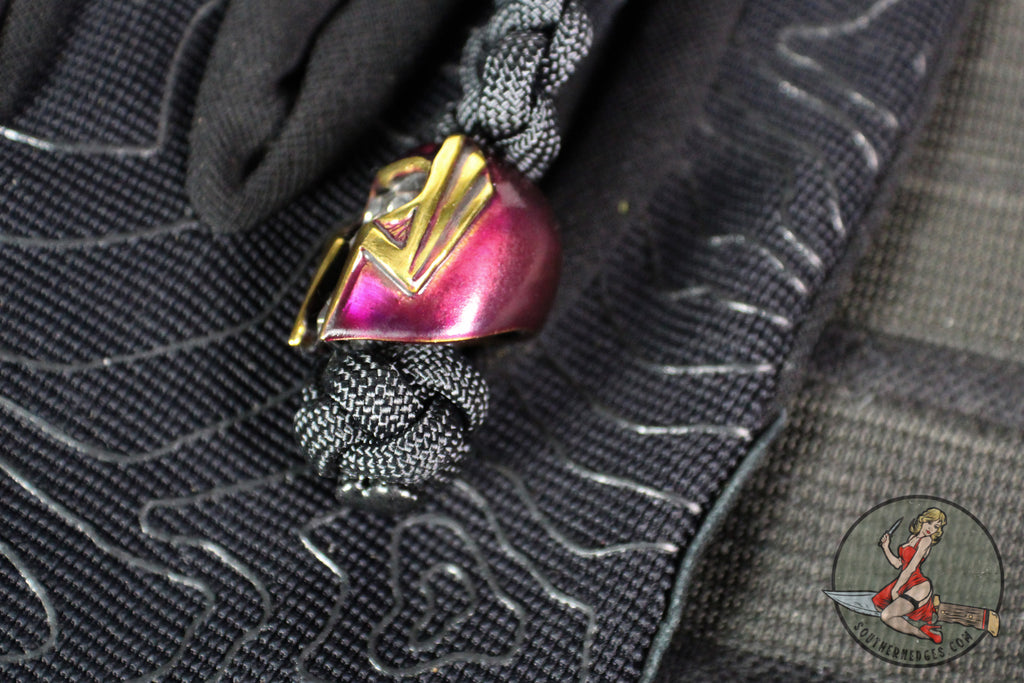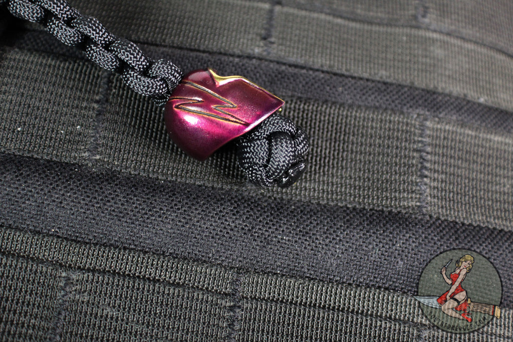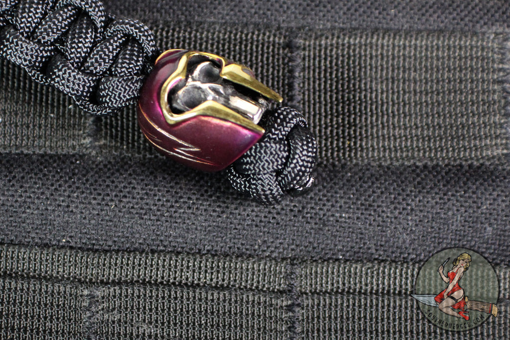Hand tied paracord lanyard featuring a custom hand crafted bead from Harding Inc. Bead is Silver/Copper Finished, and each bead is slightly different in its markings.