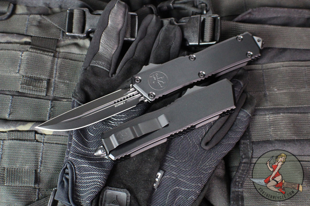 Microtech Scarab II- Gen III- Executive- Tactical- D/E-S Double Edge/Single Edge- Black Handle- Black Blade 1181-1 T