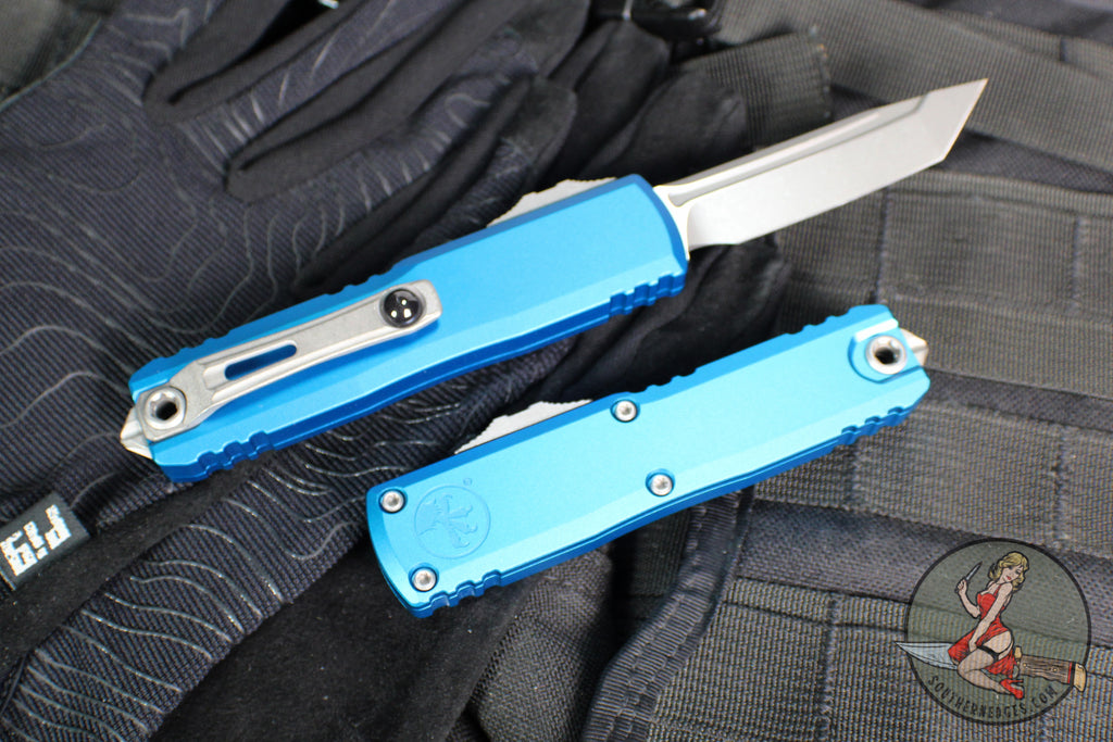 Microtech UTX-85 OTF Knife- GEN IV- Tanto Edge- Blue Handle- Apocalyptic Finished Blade 12334-10 APBL