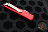 Red Single Edge (S/E) UTX-85 with stonewash blade finish and standard hardware. Double action Out the Front (OTF) knife. Red anodized 6061-T6 aluminum handle with M390 steel blade. 3.125" long blade, 7.50" overall tip down carry.