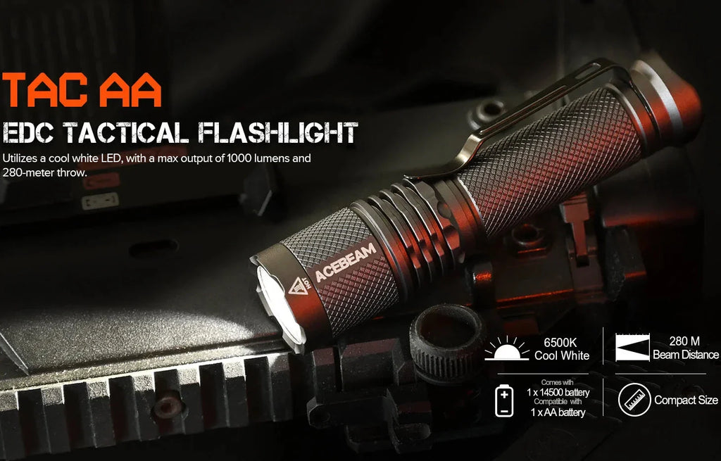 - Whether you're navigating the wilderness or responding to an emergency, the Acebeam TAC AA Tactical Flashlight is your ultimate companion. Don't miss your chance to own this exclusive limited edition - get yours today before they're gone!