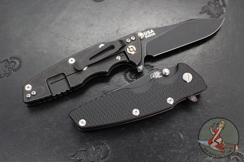• Model Number: Eklipse 3.5"- Slicer Edge- Hollow Grind- Battle Black Titanium and Various G-10 Scales- Battle Black S45VN Blade