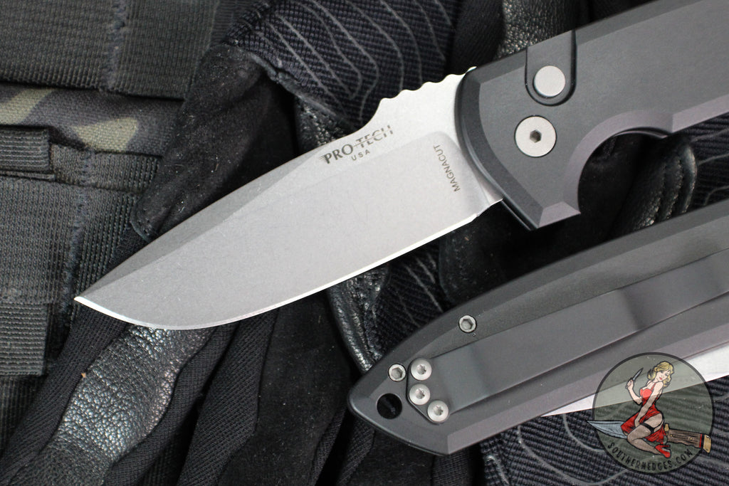 Protech Les George Rockeye Out The Side (OTS) Auto- Black Handle- Stonewash Magnacut Blade LG3101
