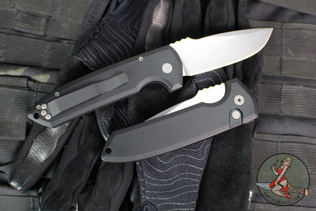 Les George has teamed up with Protech knives to bring you an auto version of the his Rockeye Auto. Black finished Aluminum Handle with Stonewash Magnacut steel blade,