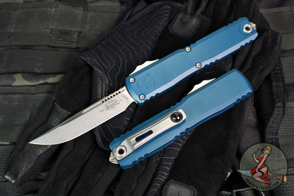 Microtech Ultratech OTF Knife- GEN IV- Single Edge- Deep Ocean Finished Handle- Stonewash Finished Blade 11214-10 DO