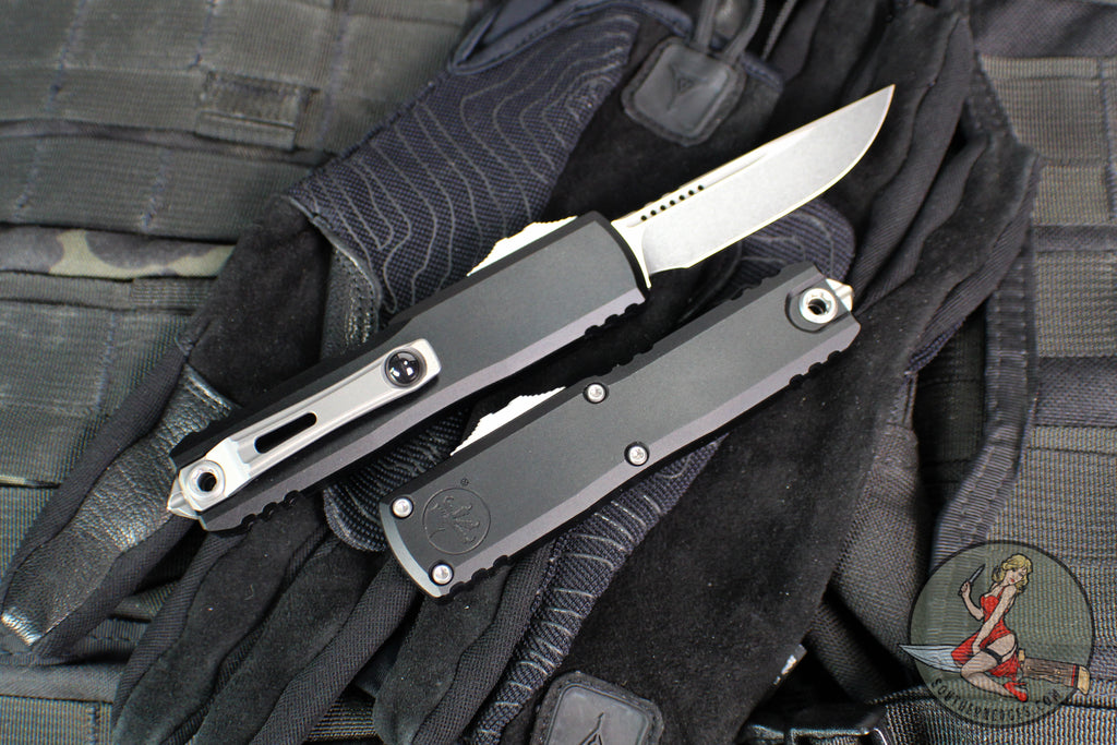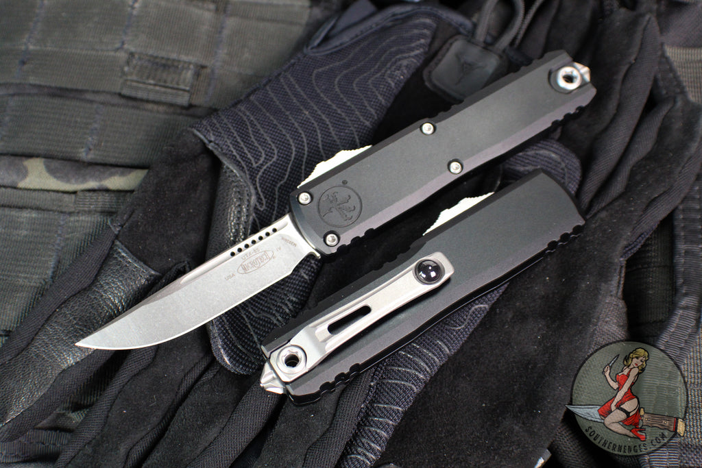Microtech UTX-85 OTF Knife- GEN IV- Single Edge- Black Handle- Stonewash Blade 12314-10