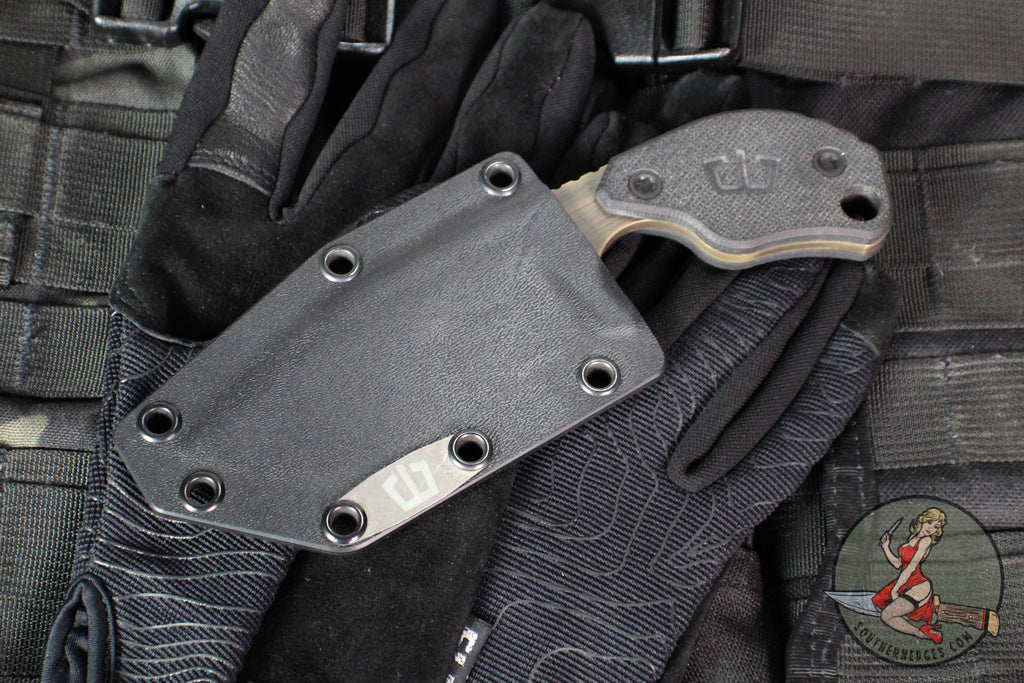 Blackside Customs/Strider Knives SLCC Fixed Blade- Drop Point Edge- Black G-10 Scale- Distressed OD Green Finished Magnacut Blade