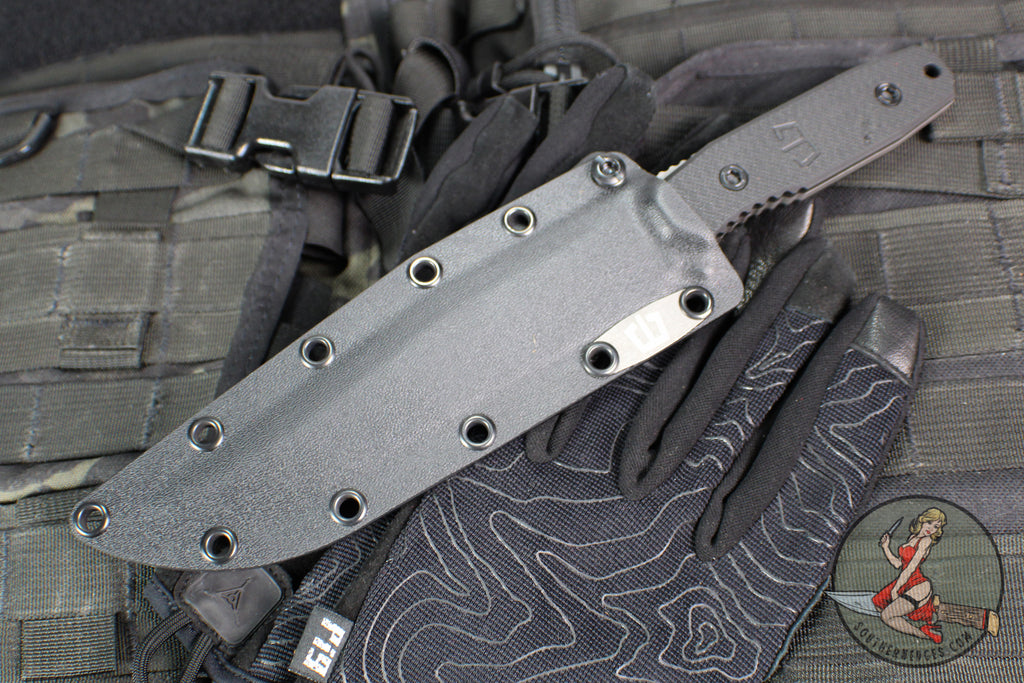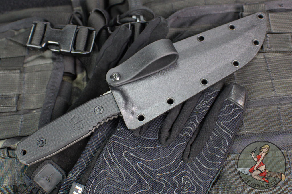 Blackside Customs Recon 1 Fixed Blade- Gray Matter Finished Saw Back Blade- Black G-10 Scales BSC-ROG1-GMSAW-BLKG10