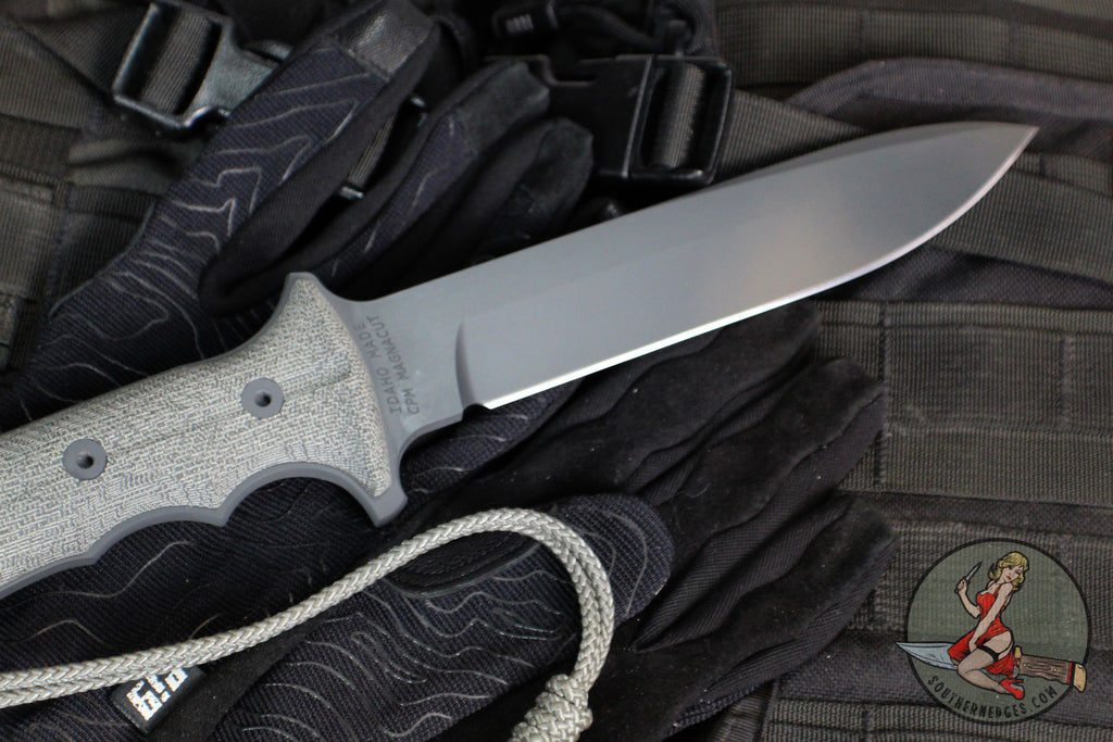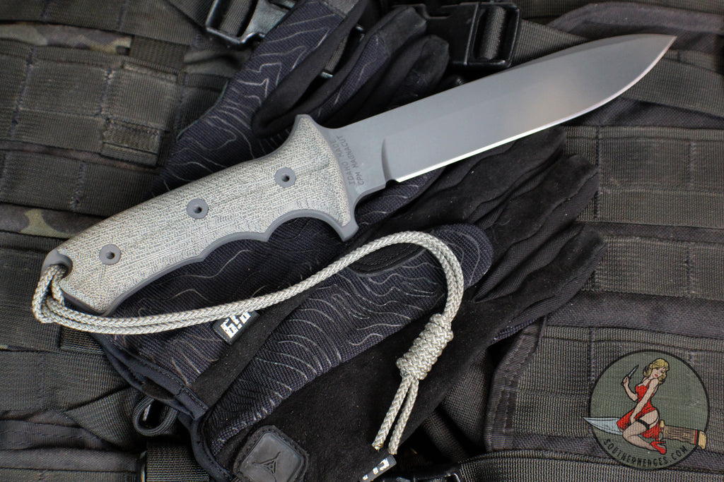 A design collaboration between Chris Reeve and William W. Harsey, the Green Beret knife is made for any and all tactical and outdoor tasks- civilian version of the Yarborough. Black Canvas Micarta handle scales, black cerakoted Magnacut steel blade.