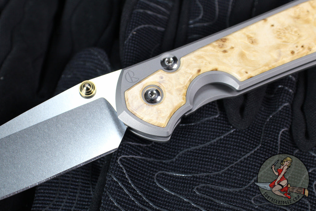 Chris Reeve Large Sebenza 31- Drop Point- Box Elder Wood Inlay- Magnacut Steel Blade L31-1108