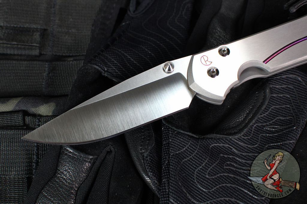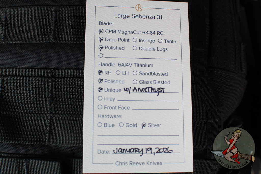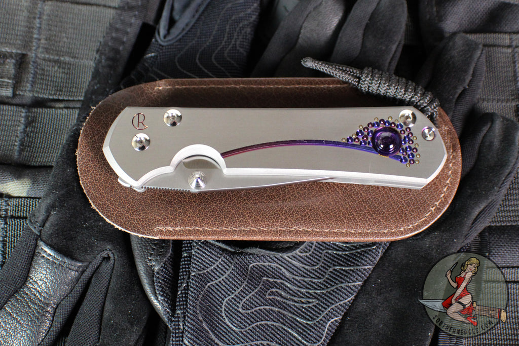 Chris Reeve Large Sebenza 31- Drop Point- Unique Graphic Titanium Handle- Amethyst Cabochon Inlay- Stonewash Magnacut Blade L31-1408-0136 V3