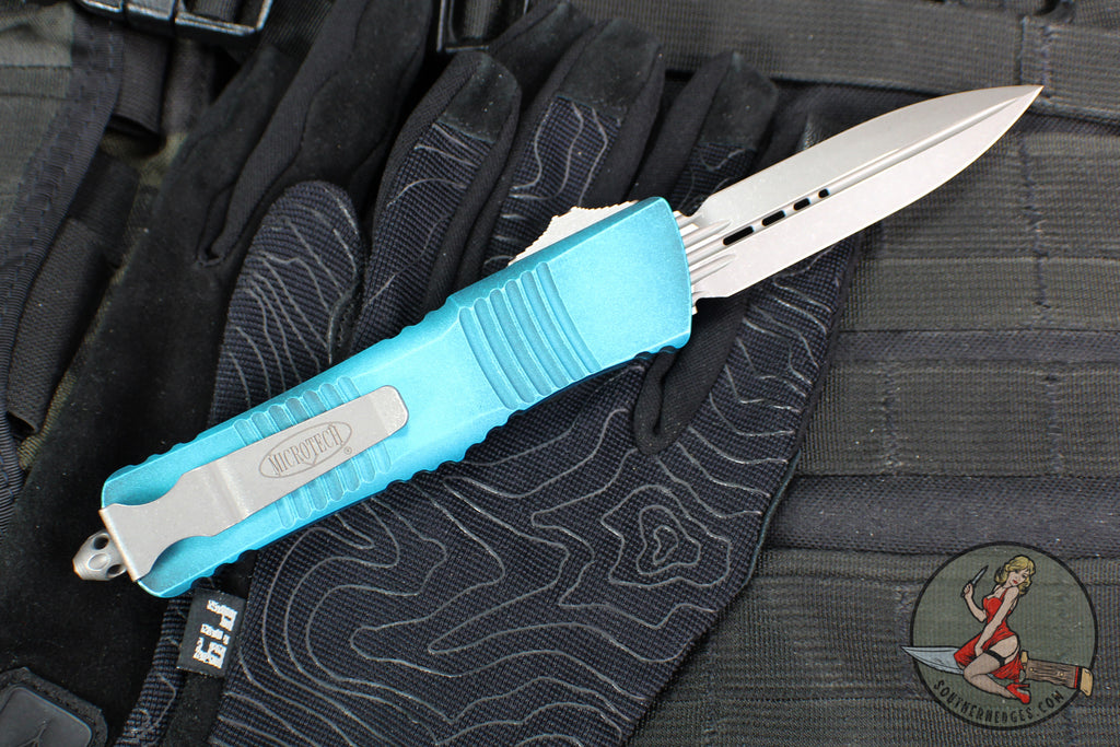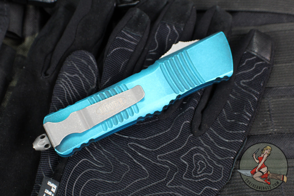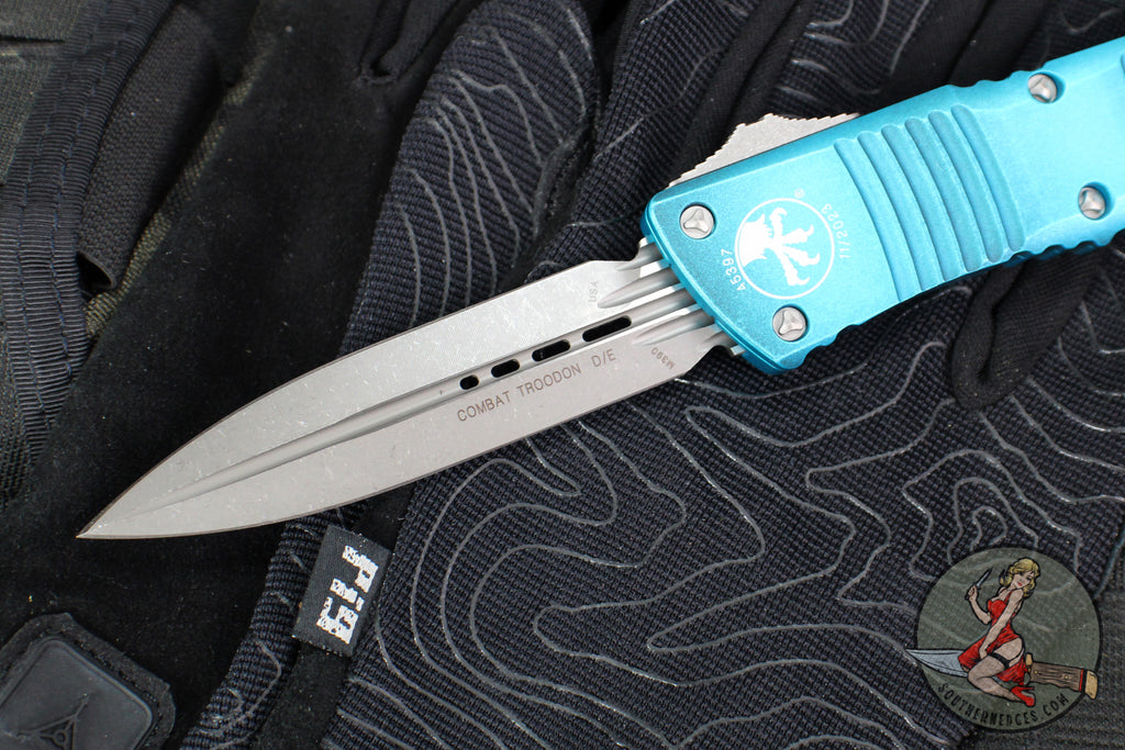 Microtech Combat Troodon OTF Knife- Double Edge- Weathered Turquoise Handle- Apocalyptic Blade 142-10 APWTQ