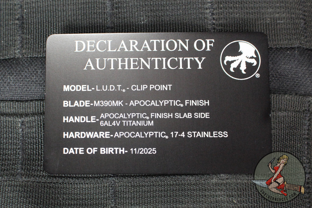 Marfione Select LUDT OTS Knife- Apocalyptic Finished Titanium Handle- Apocalyptic Plain Edge Blade 1135-10 APMS1