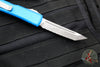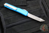Microtech Ultratech OTF Knife- Tanto Edge- Blue Handle- Apocalyptic Full Serrated Blade 123-12 APBL
