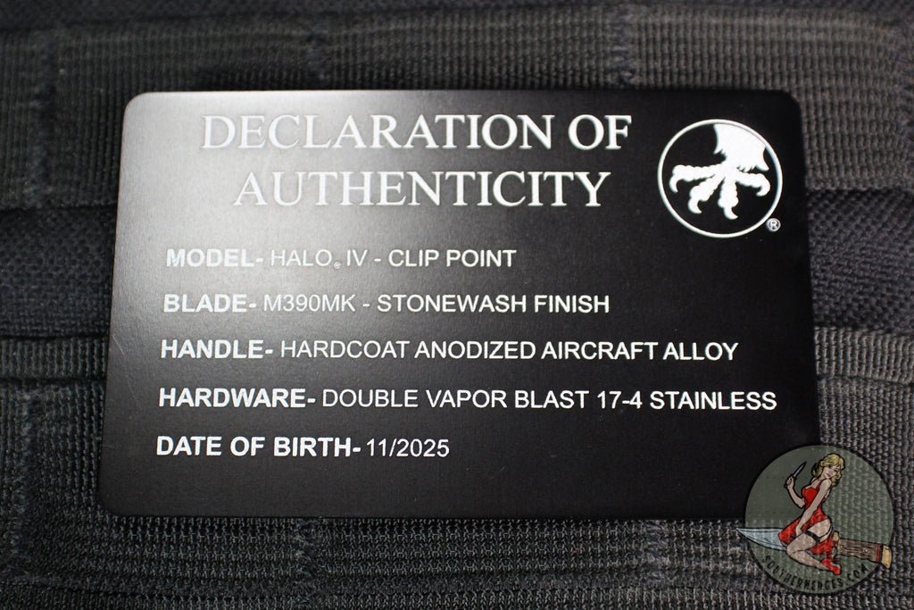 Microtech Halo IV- Single Edge- Marfione Select- Black Handle- Stonewash Blade 1150-10 MS1