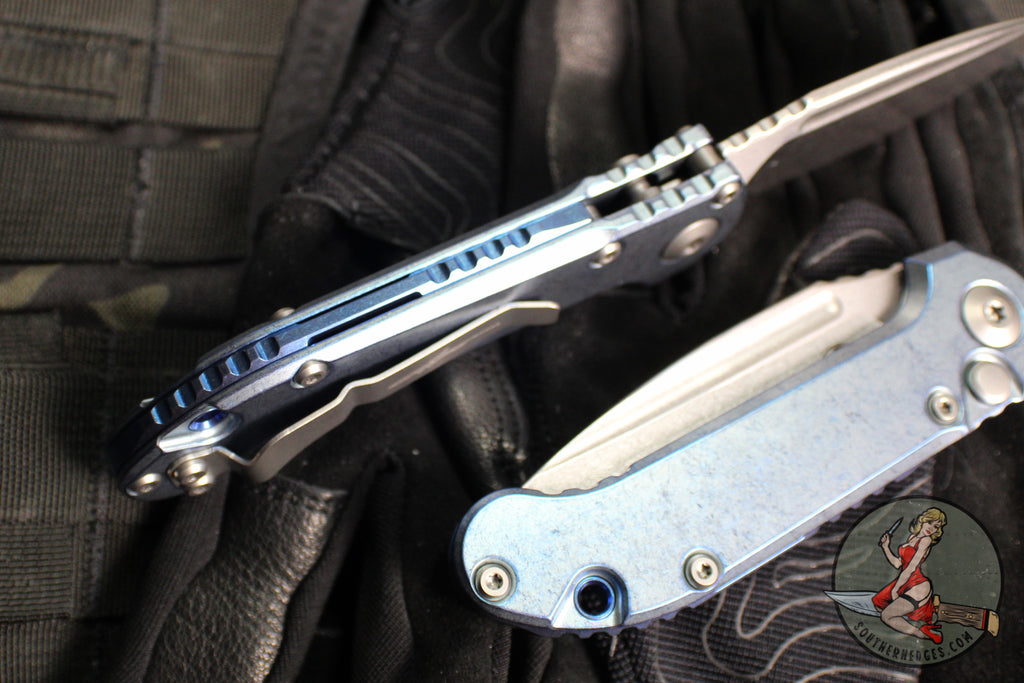 Marfione Select LUDT OTS Knife- Single Edge- Ice Blue Anodized Smooth Titanium Handle- Stonewash Plain Edge Blade- Blue Anodized Titanium Backstrap 1135-10 MS11