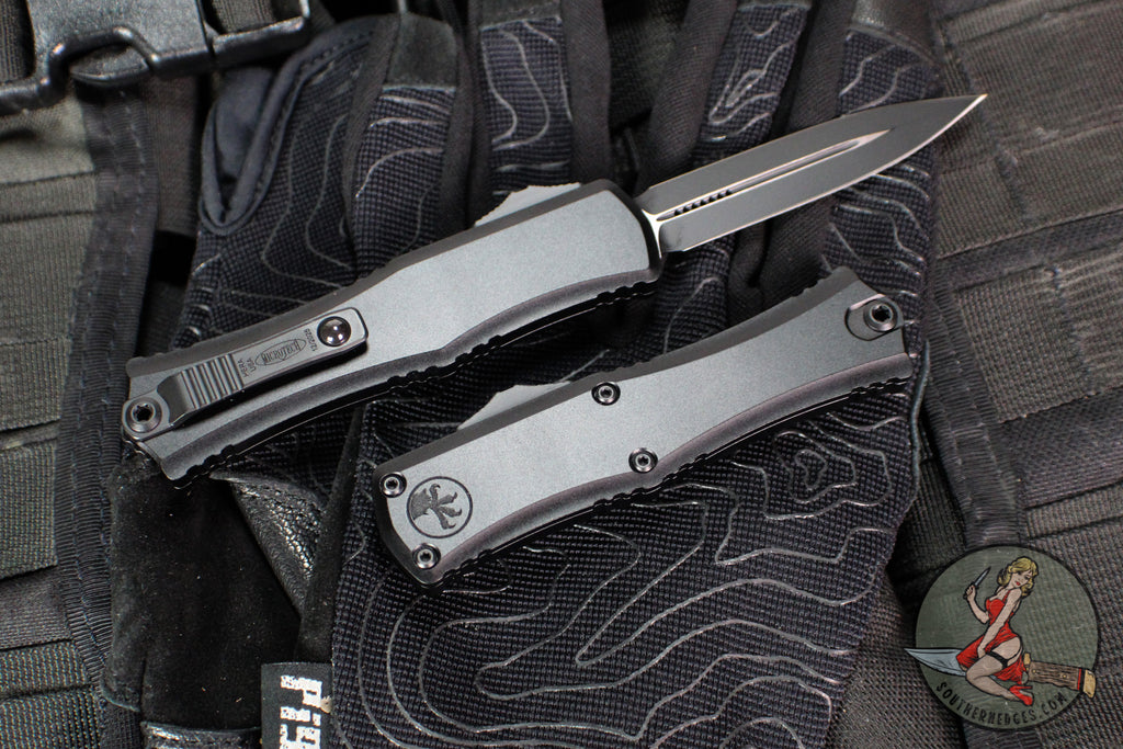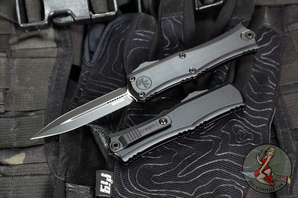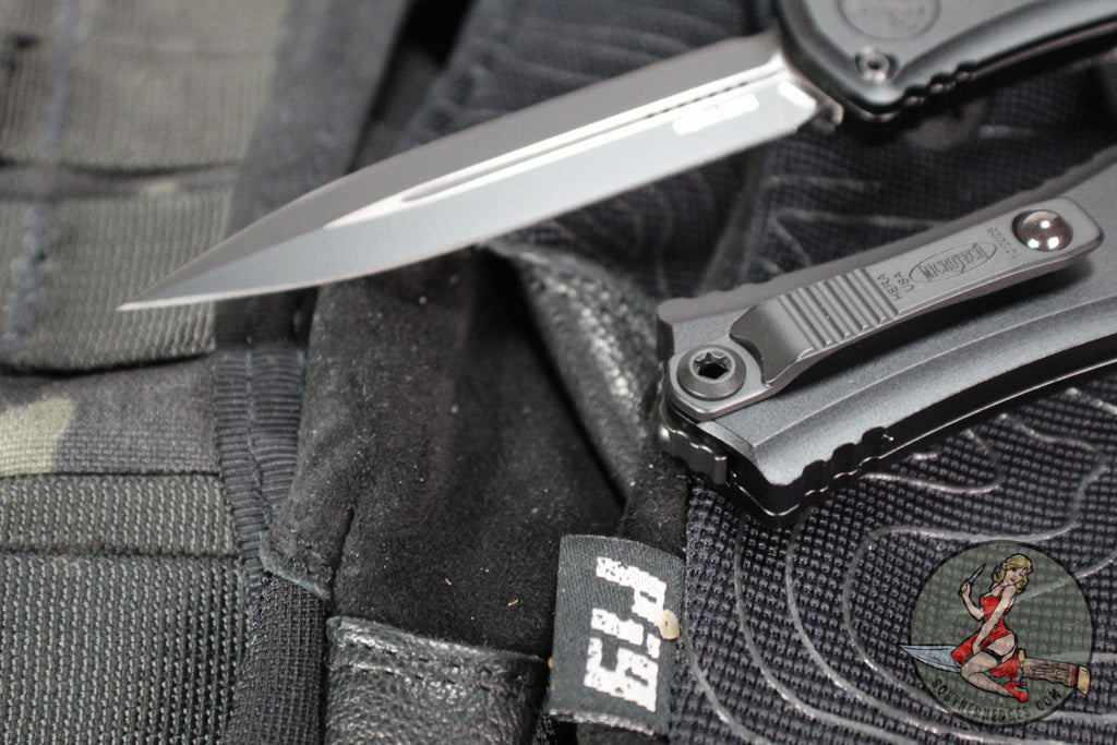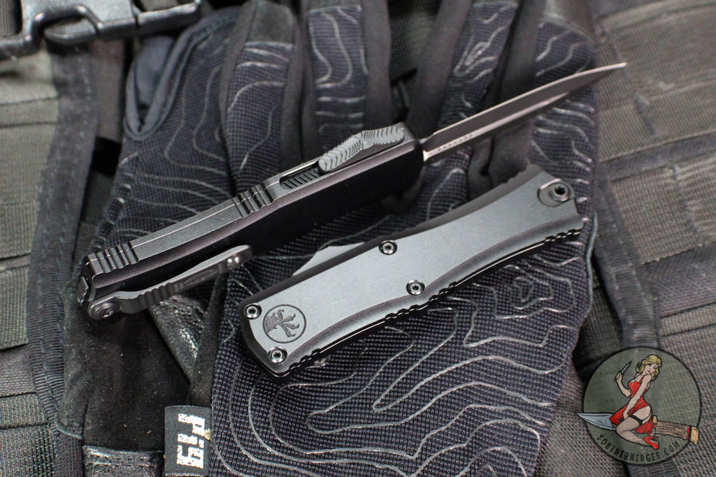 Microtech Hera II OTF Knife- MINI- Double Edge- Tactical- Black Handle- Black Plain Blade 1702M-1 T