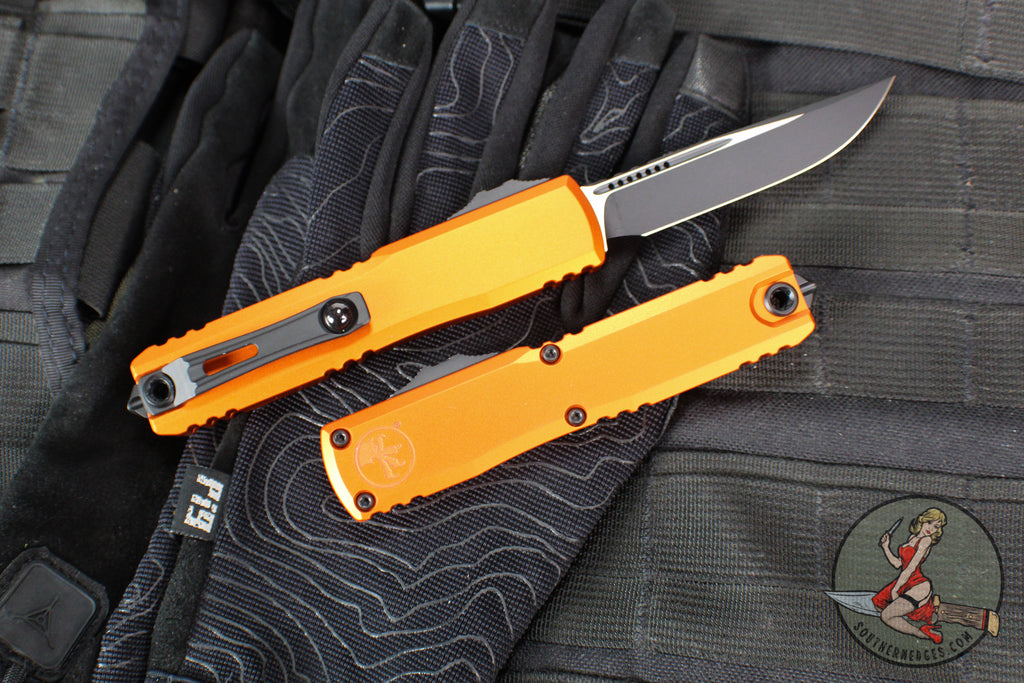 Microtech Ultratech OTF Knife- GEN IV- Single Edge- Orange Handle- Black Finished Plain Edge Blade 11214-1 OR