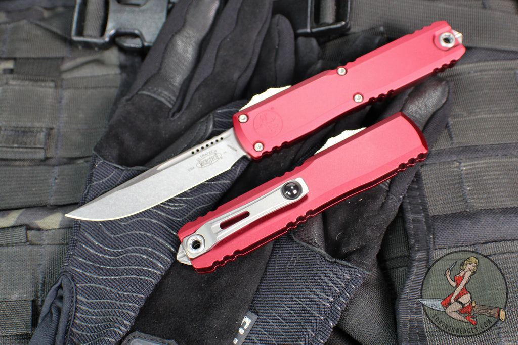 Microtech Ultratech OTF Knife- GEN IV- Single Edge- Merlot Handle Handle- Stonewash Finished Blade 11214-10 MR
