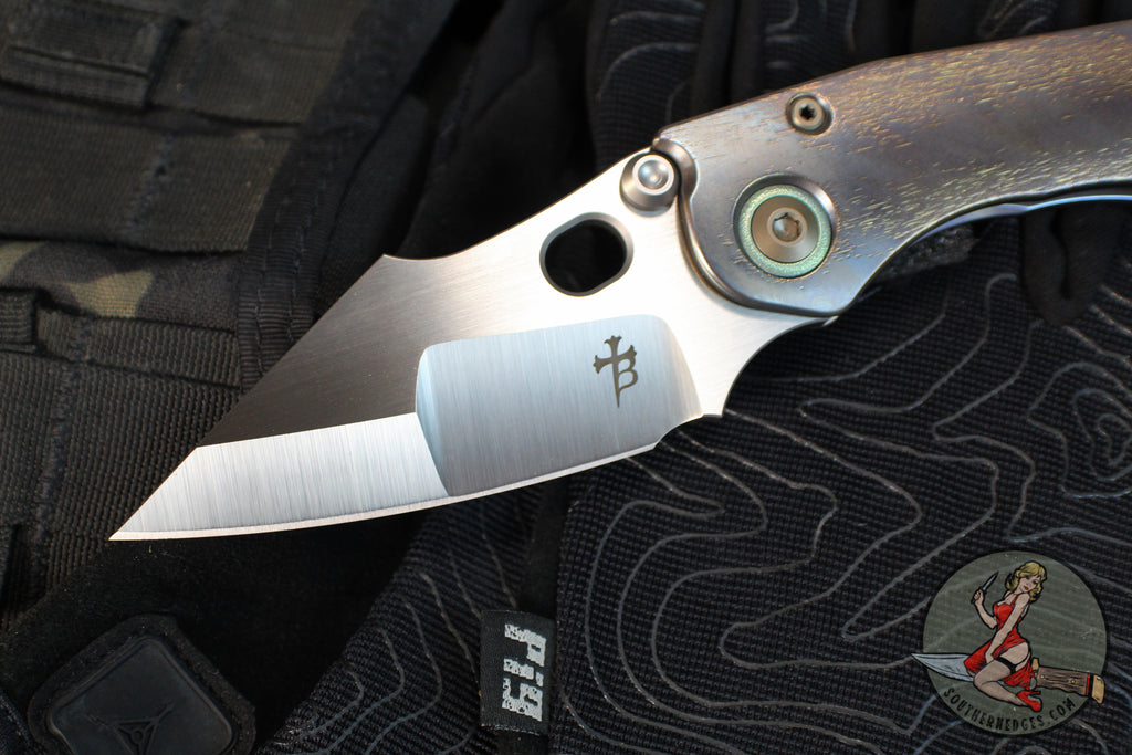 Borka Blades Custom Stitch- Cosmic Finished Titanium Handles and Clip- Satin Nightmare Grind Blade
