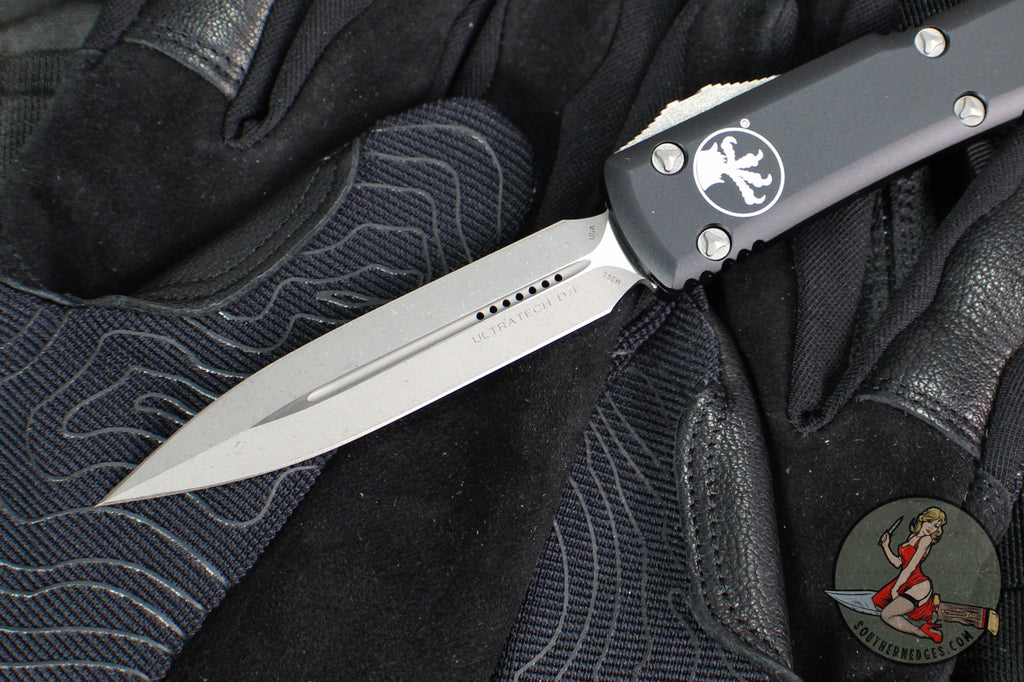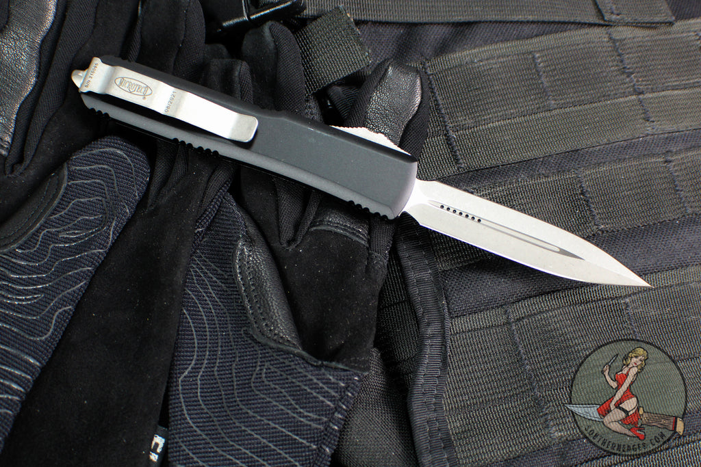 Microtech Ultratech OTF Knife- Double Edge- Black Double Edge- Apocalyptic Blade 122-10 AP- Model Number: 122-10 AP