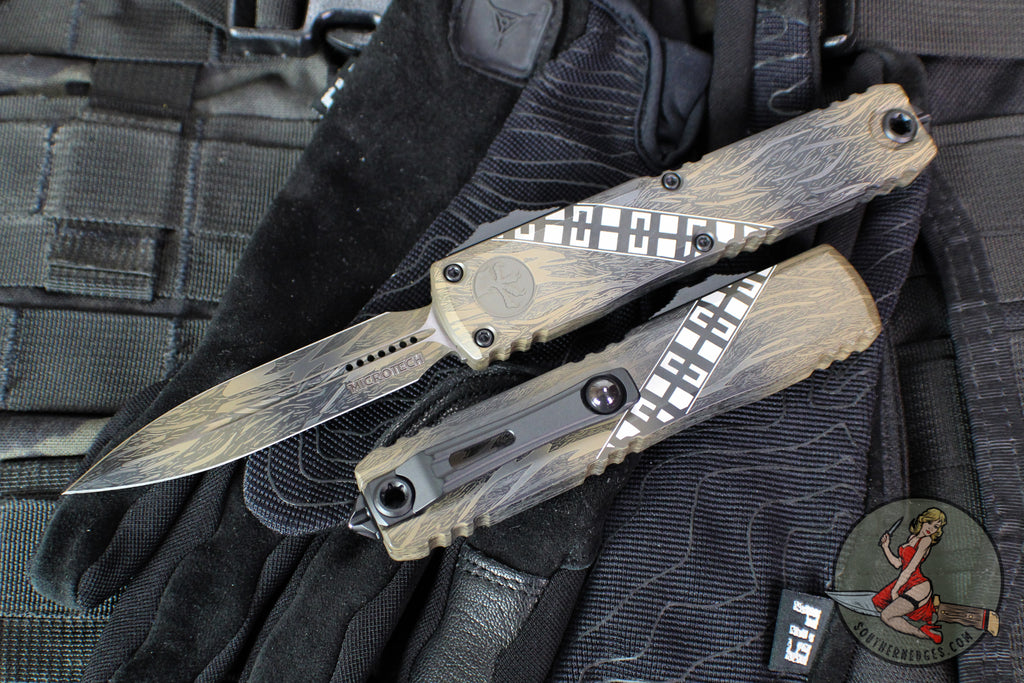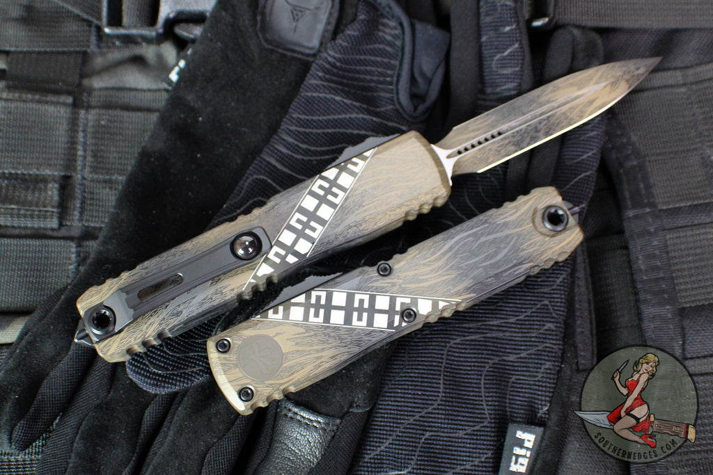Microtech Ultratech OTF Knife- GEN IV- Double Edge- Wookie Finished Handle- Wookie Finished Plain Edge Blade 11224-1 WY