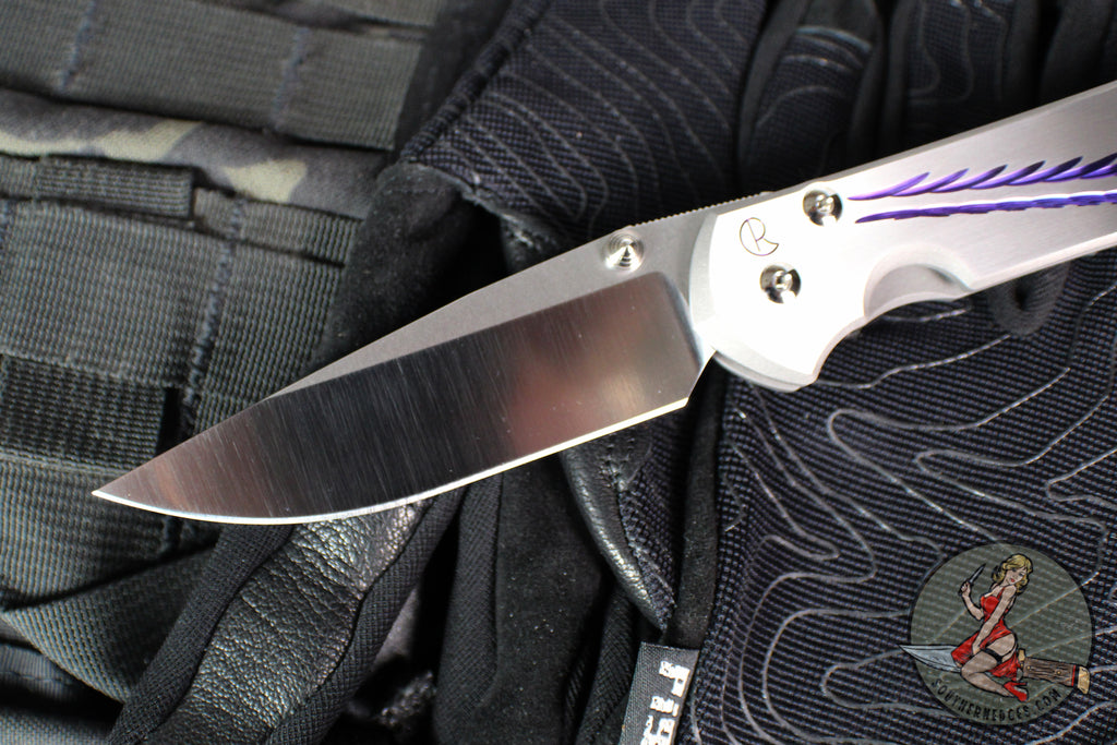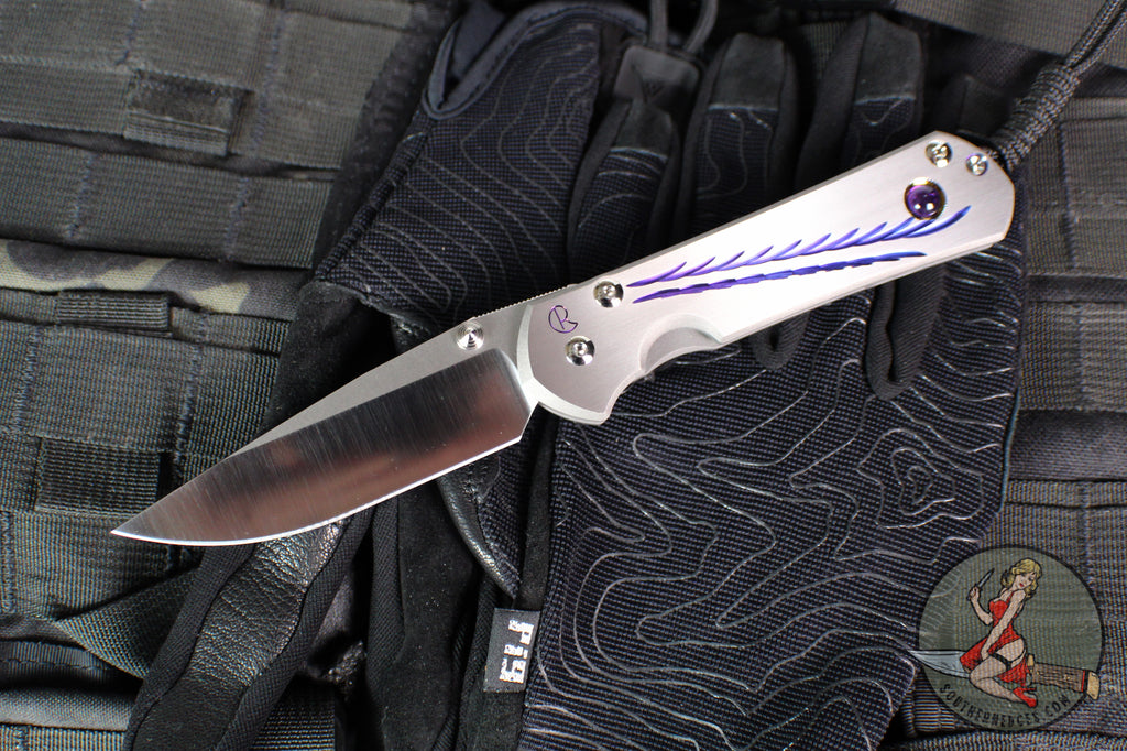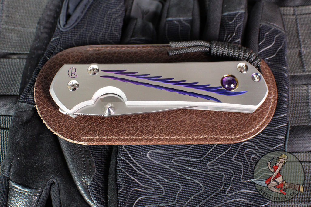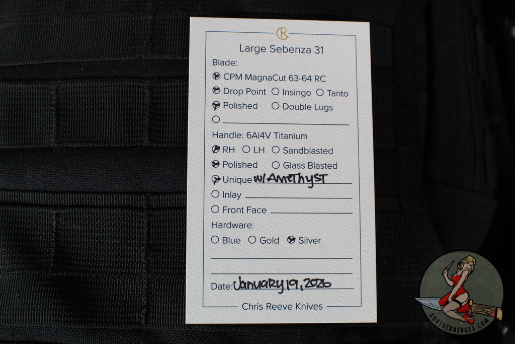 Chris Reeve Large Sebenza 31- Drop Point- Unique Graphic Titanium Handle- Amethyst Cabochon Inlay- Stonewash Magnacut Blade L31-1408-0136 V4