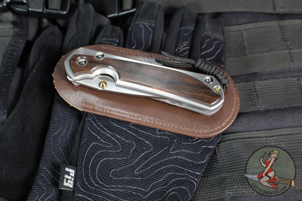 Chris Reeve Large Sebenza 31- Glass Blasted Titanium- Polished Drop Point- Macassar Ebony Wood Inlay- L31-1636 IN CPM-MAGNACUT v3
