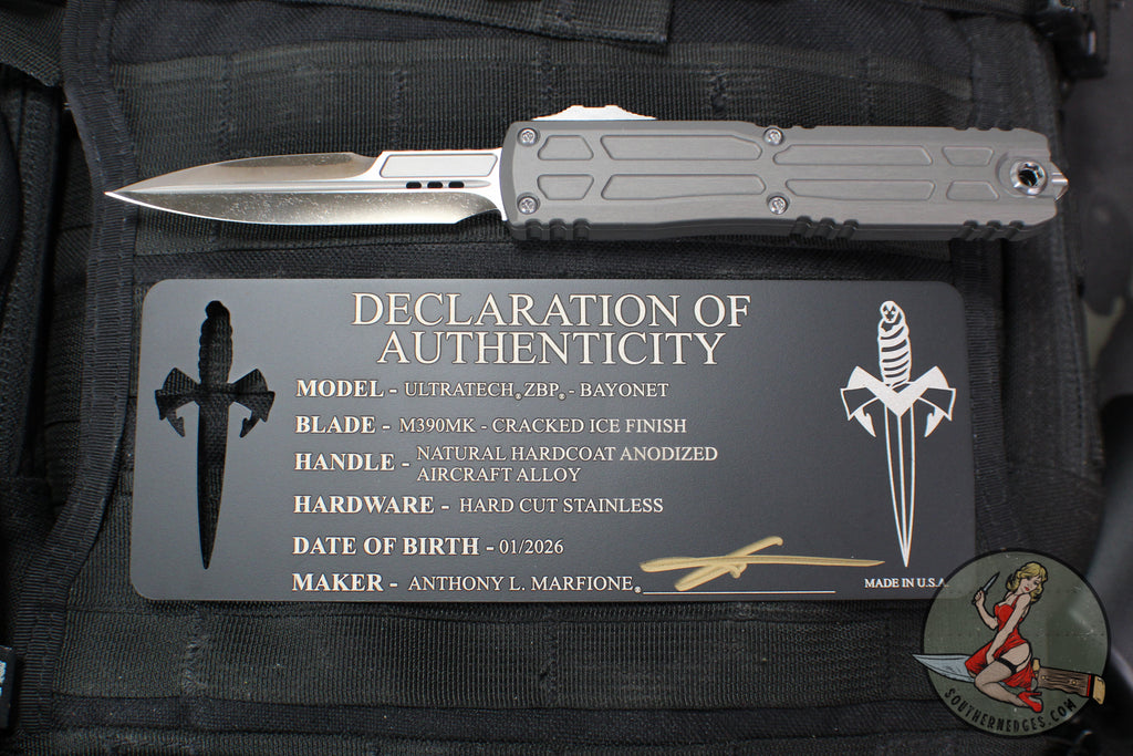 Marfione Custom Ultratech ZBP Zero Blade Play OTF Knife- EX Series- Bayonet Edge- Natural Finished Handle- Cracked Ice Finished Blade 1120EX-CINCHCS-MCK