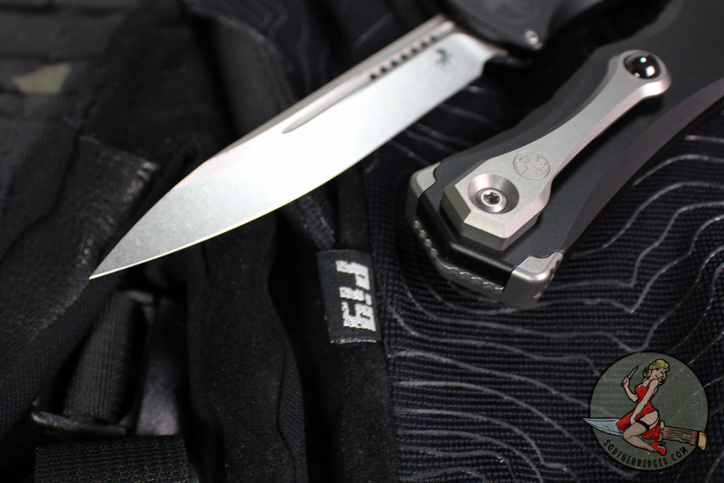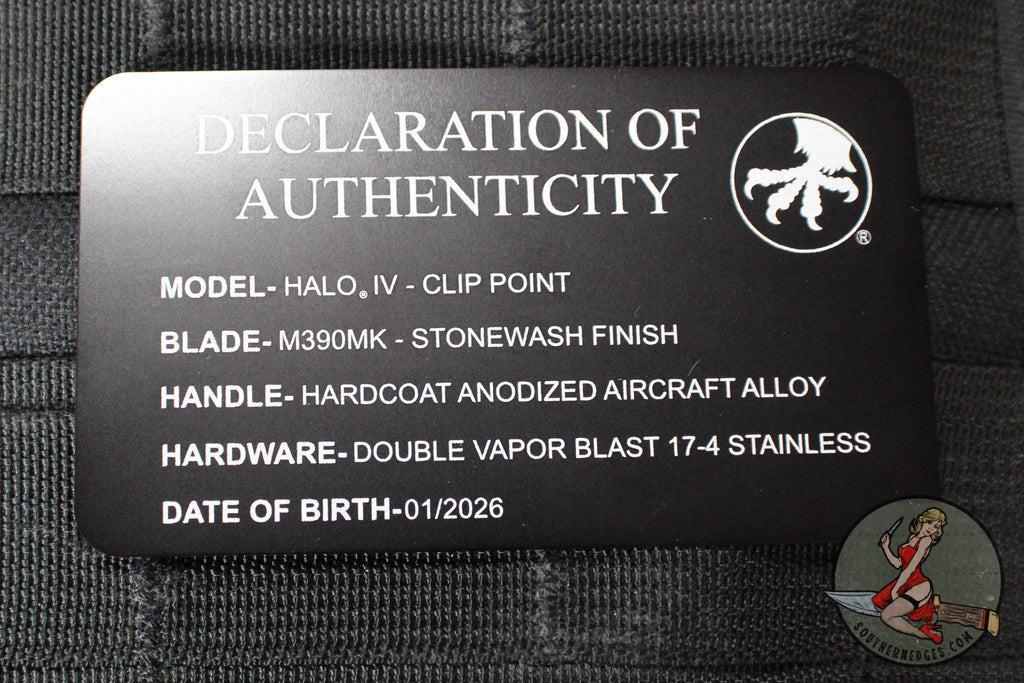 Microtech Halo IV- Single Edge- Marfione Select- Black Handle- Stonewash Blade 1150-10 MS1