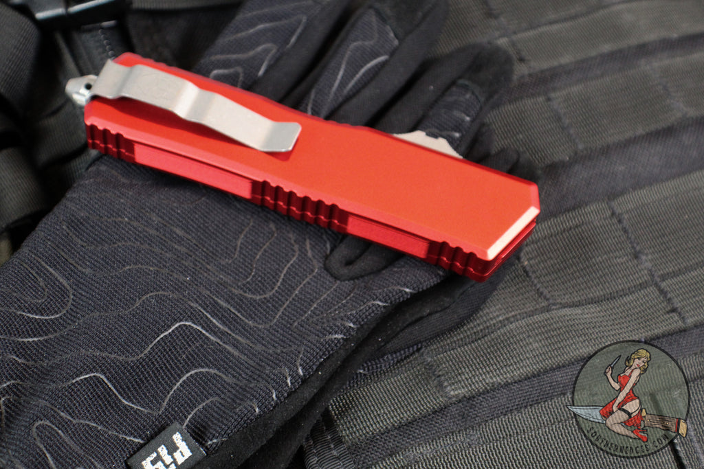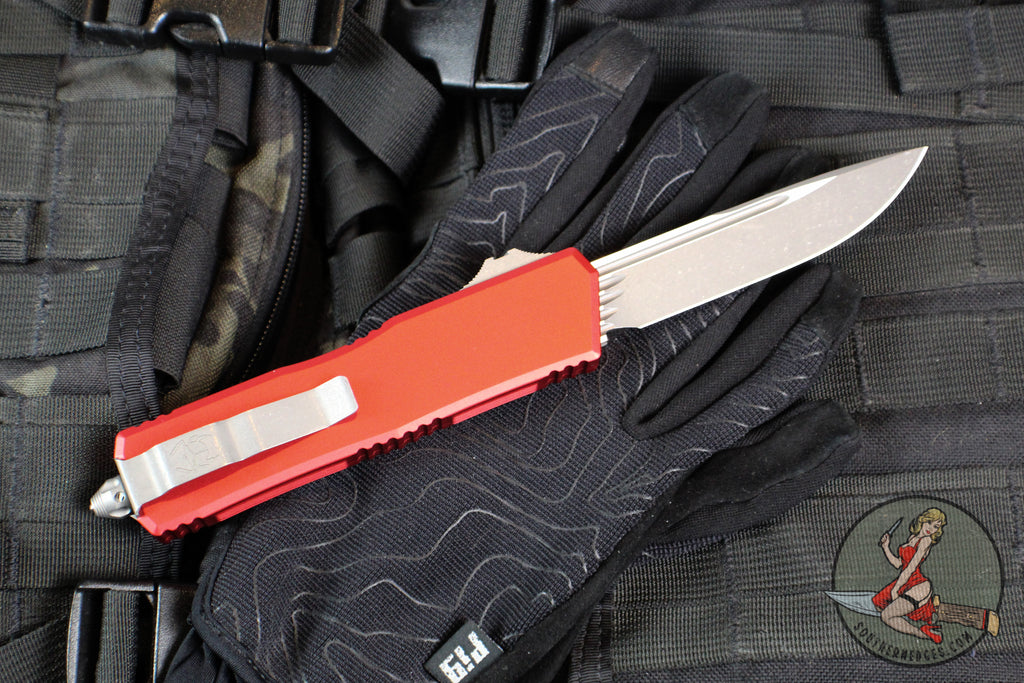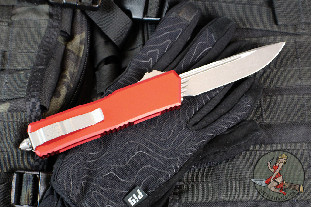 Microtech Scarab II- Gen III- Executive- Single Edge- Red Handle- Apocalyptic Blade 1176-10 APRD