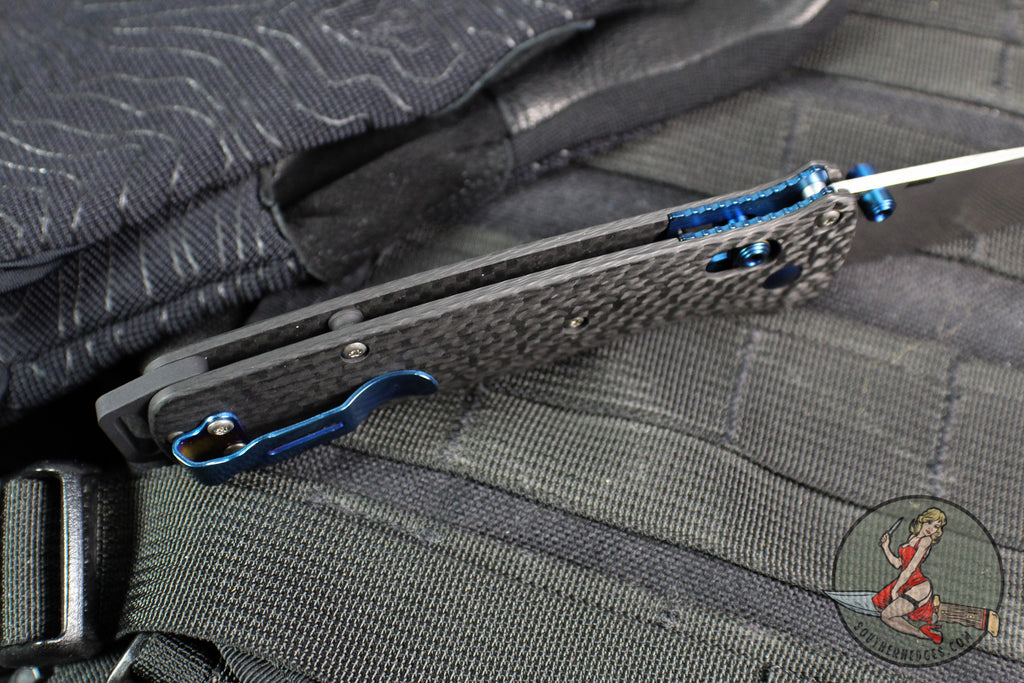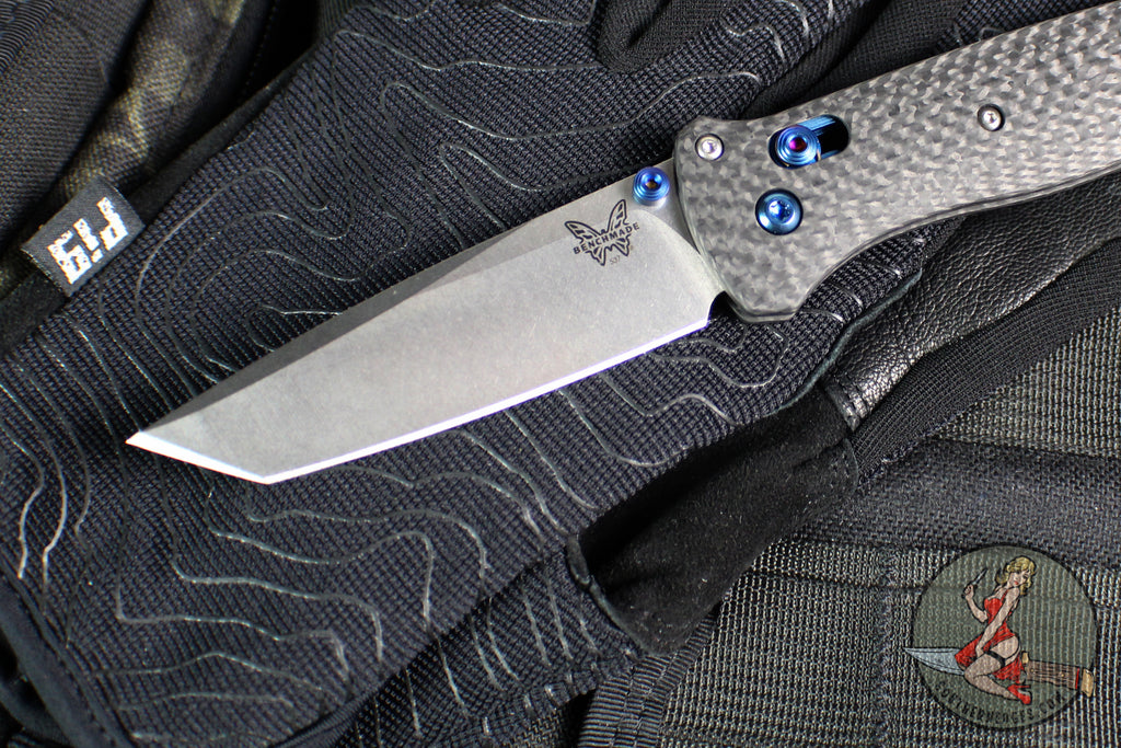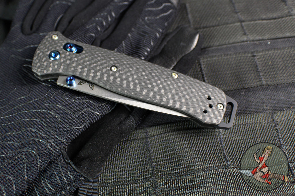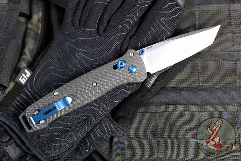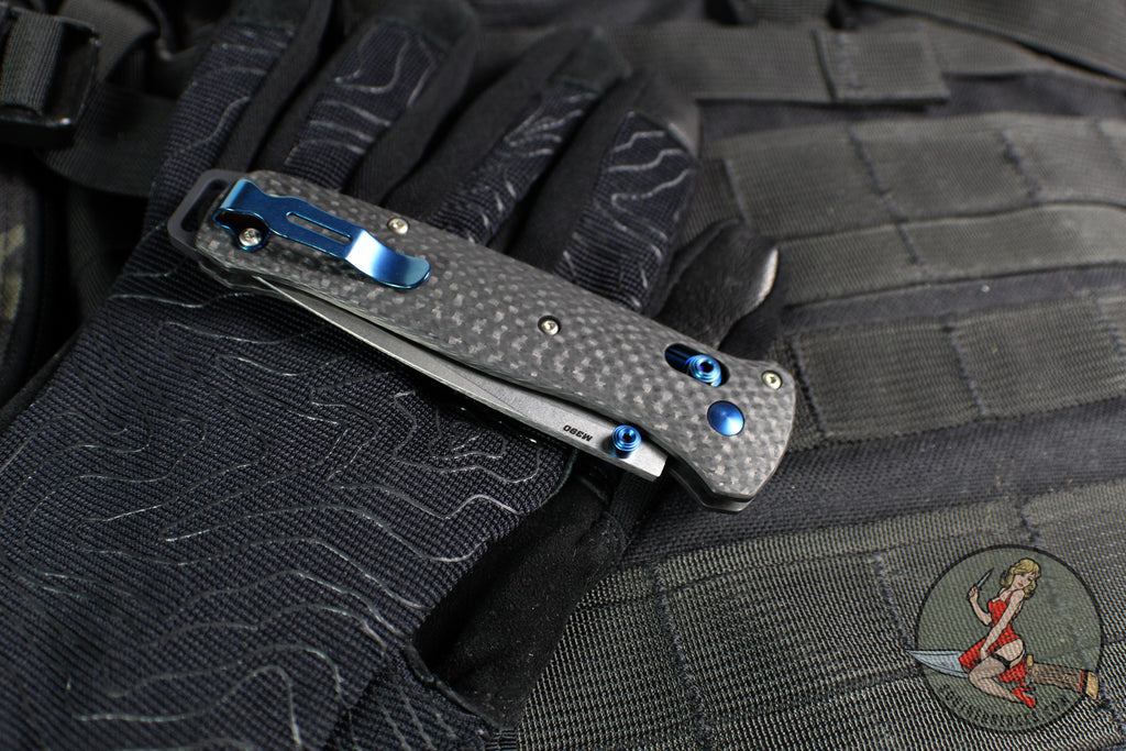 Benchmade Bailout- Tanto Edge- Carbon Fiber Handle- Stonewash Plain Edge- Blue Hardware 537-09