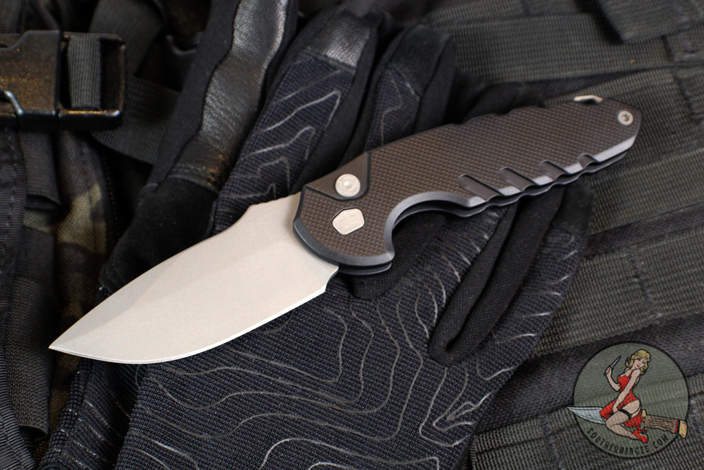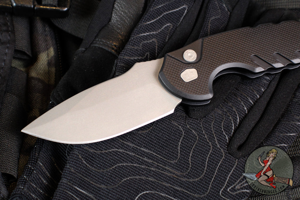 Blackside Customs Bad Idea- OTS Auto Knife- Black Textured Handle- Magnacut Gray Matter Finished Blade BSC-BA-BLKA-GM