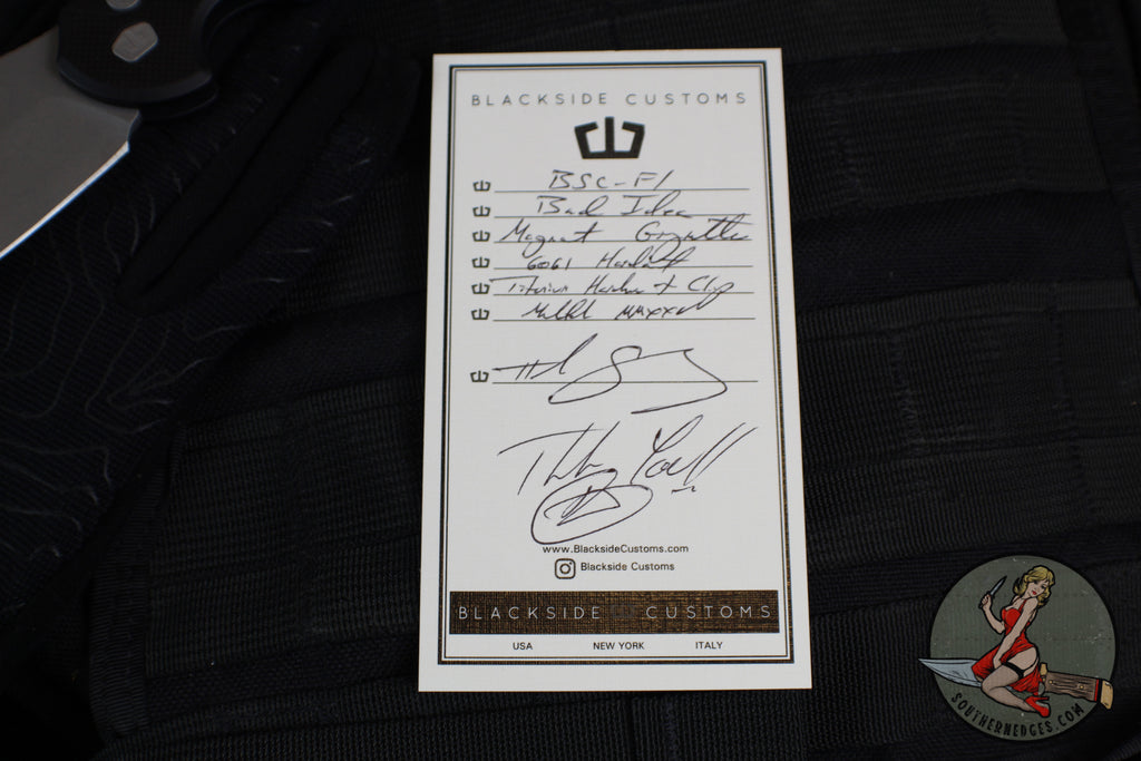 The Bad Idea side auto knife comes from many years of experience from Hank Greenberg, the brain behind Blackside. Custom detailing everywhere including custom patterned milled screws and logo pivot. Blackside Customs was born in N.Y. on the outside-the-box thinking and design invested into the highest quality KNIVES, edc gear, tools, and pens made.