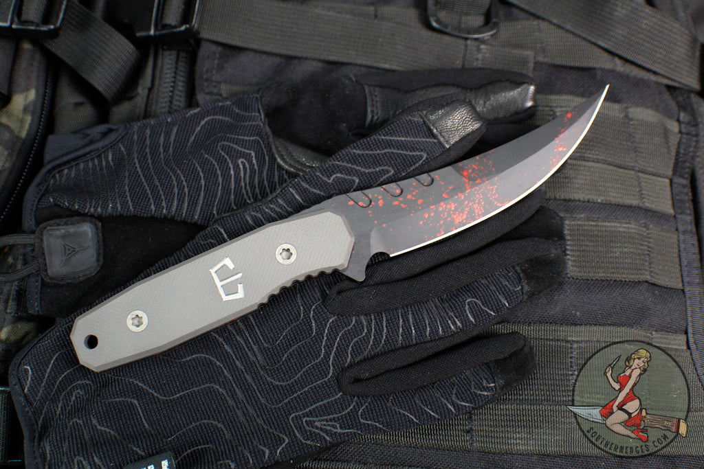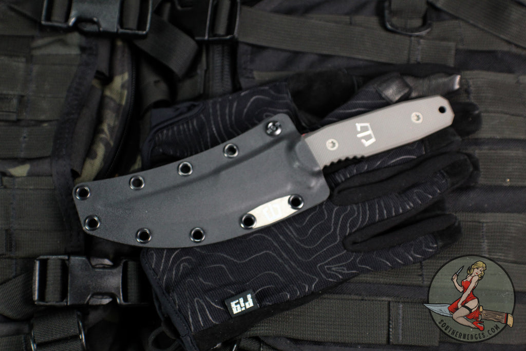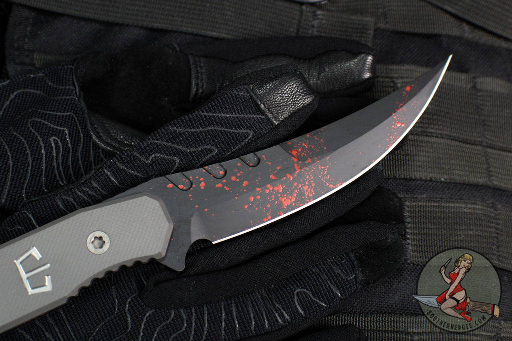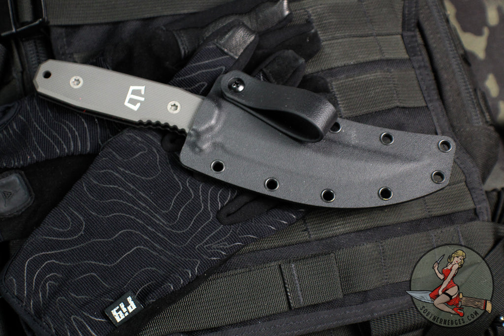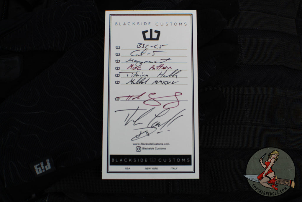 The Cat 5 is Blackside Customs forward thinking fixed blade design manifested in an edc Persian, born from decades of experience in the knife industry. The Cat 5 is small batched produced and has a modern Persian Murdered Out Camo (MOC) Cerakoted finished Magnacut steel blade with textured Titanium scales. Custom detailing everywhere including custom patterned milled scale screws and logo sheath tag. Blackside Customs was born in N.Y. on the outside-the-box thinking and design invested into the highest quality KNIVES, edc gear, tools, and pens made.