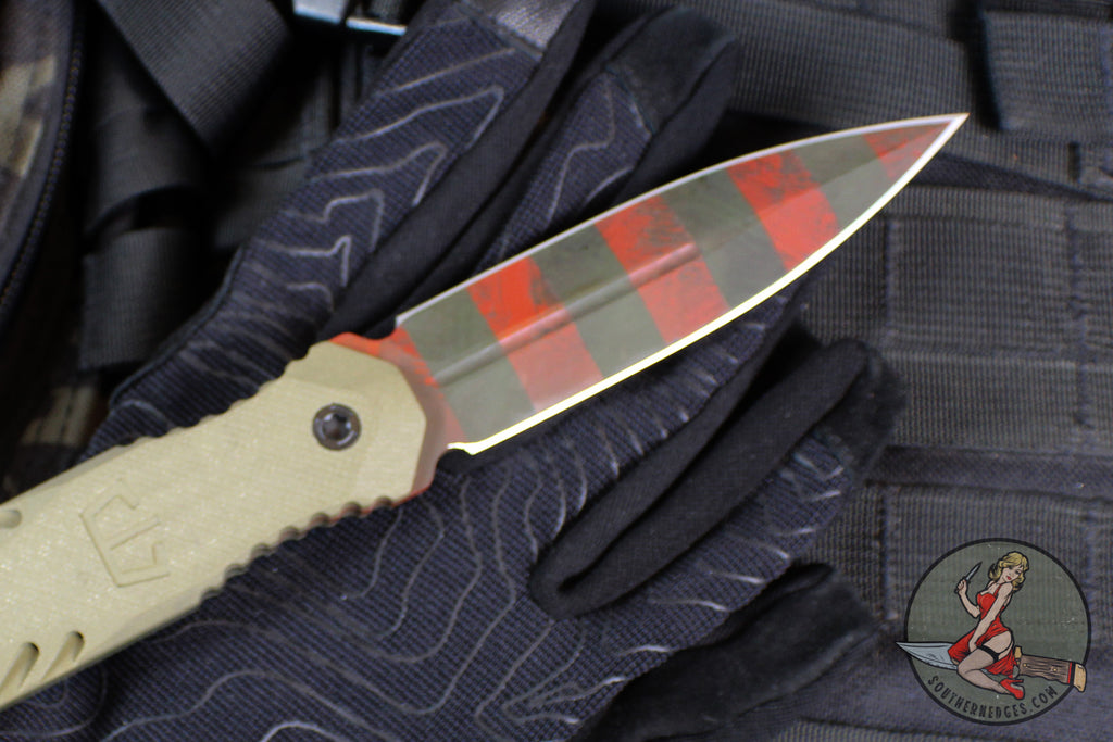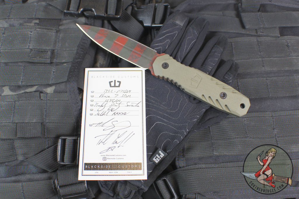 Blackside Customs Phase 7 SDM- Double Edge Dagger - Freddy's Dirty Sweater Edition- Tan G-10 Handle Scales- Dirty Sweater Finished Blade BSC-P7SDM-FREDDY