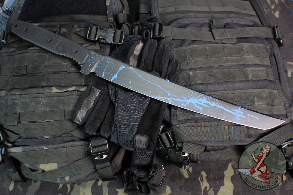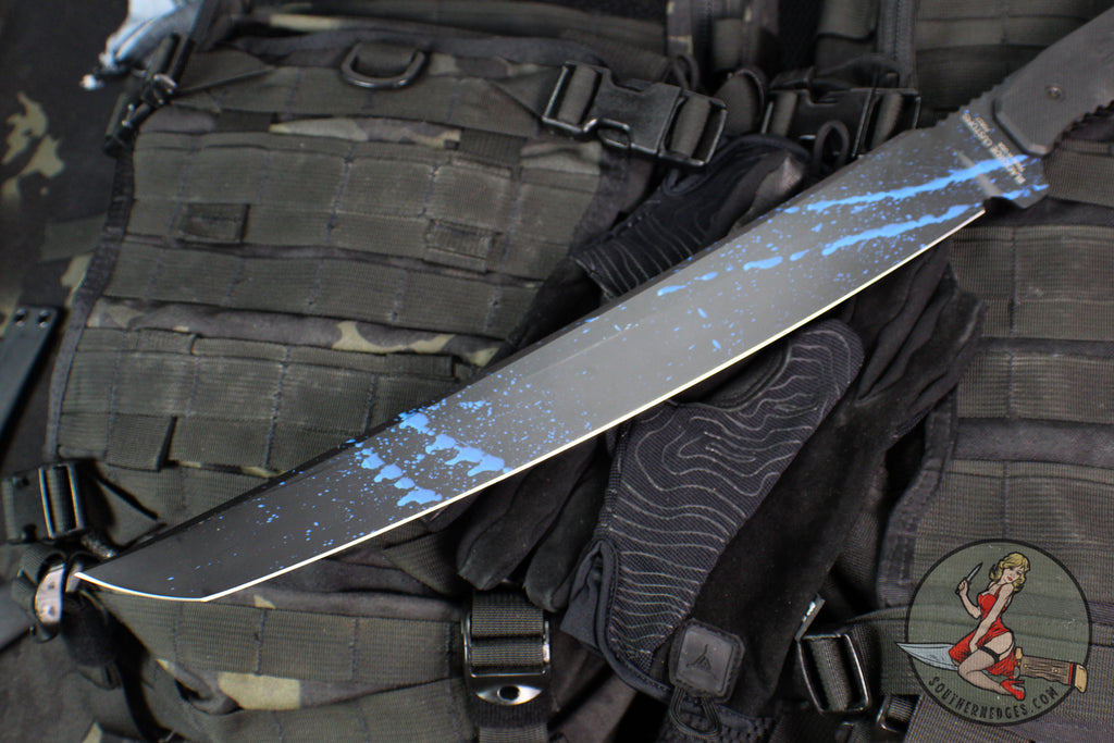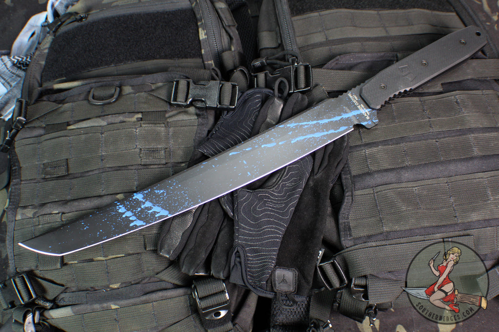 Blackside Customs Tokyo Drifter Fixed Blade Wakizashi- Blue Splatter On Black Blade- Black G-10 Scales- Black HW BSC-TD-BLKBLUES-BLKG10