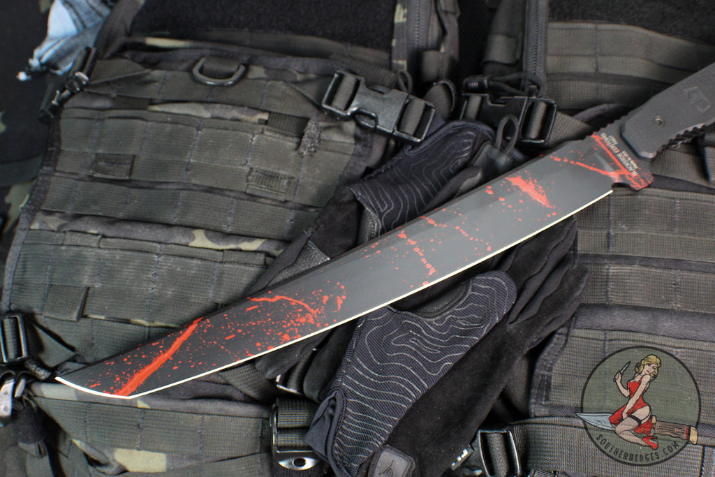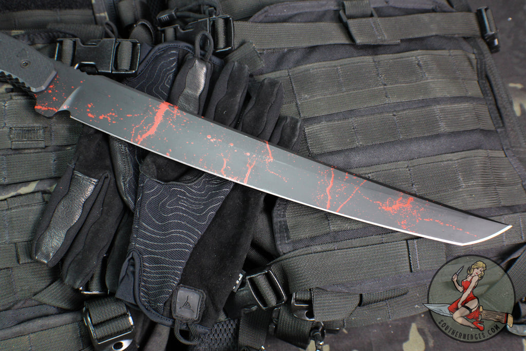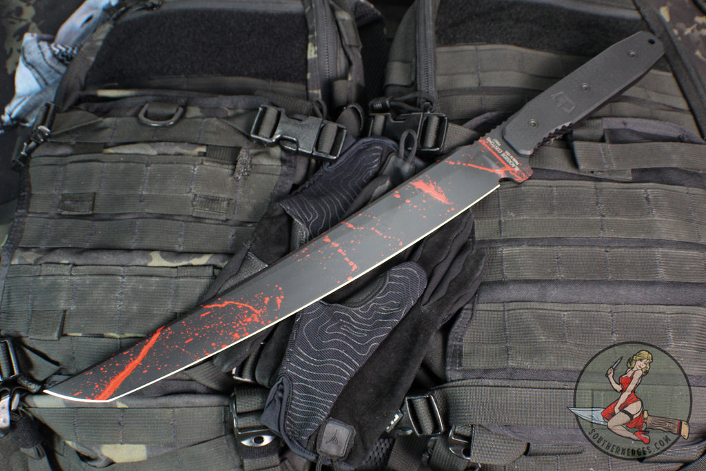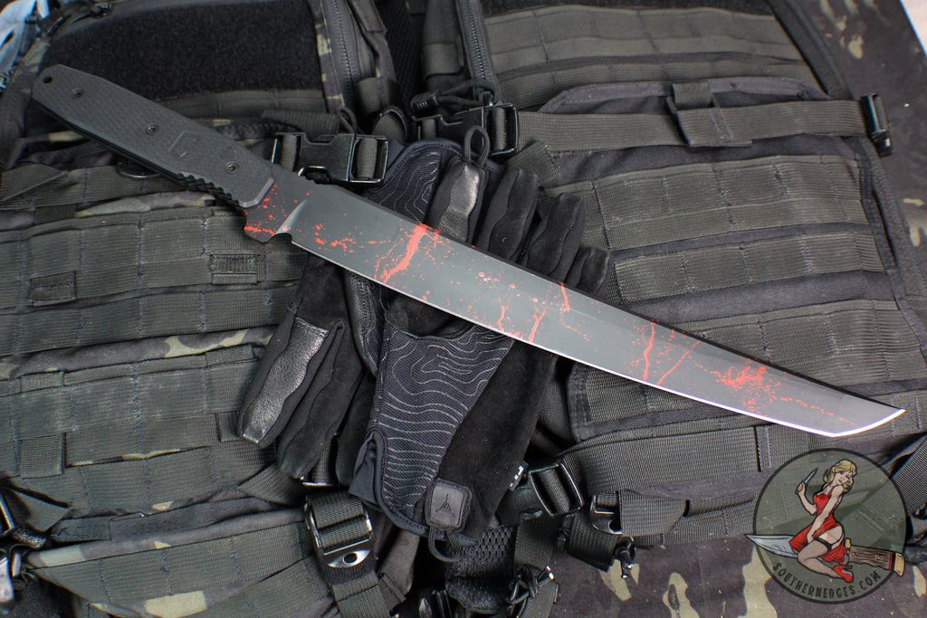 Blackside Customs Tokyo Drifter Fixed Blade Wakizashi- Red Splatter On Black Blade- Black G-10 Scales- Black HW BSC-TD-BLKREDS-BLKG10