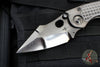 Marfione Custom Knives Stitch . Collaboration with Sebastijan Berenji of Borka Knives. DLC Finished Titanium frag pattern handle- Cracked Ice DLC Diamondwash Finished Blade. DLC Two-tone hardware. Comes with custom pouch, and signed steel certificate.
