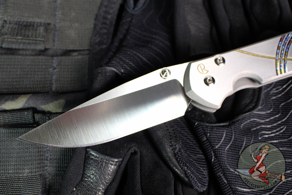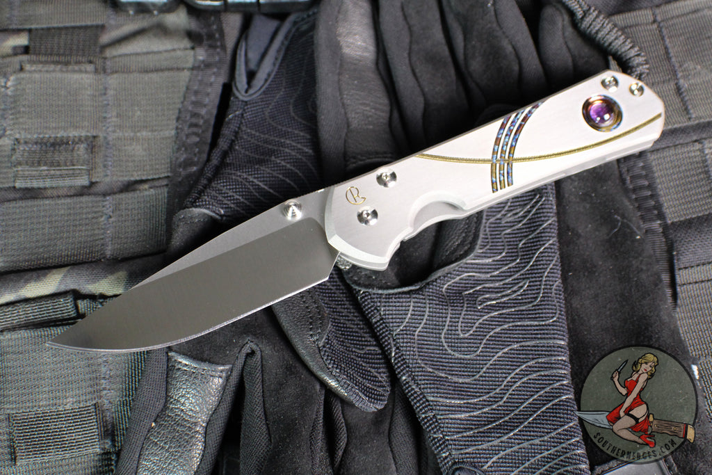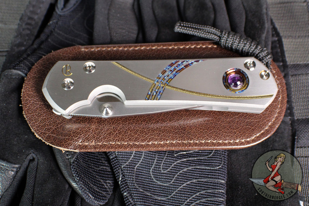 Chris Reeve Large Sebenza 31- Drop Point- Unique Graphic Titanium Handle- Amethyst Cabochon Inlay- Stonewash Magnacut Blade L31-1408-0136