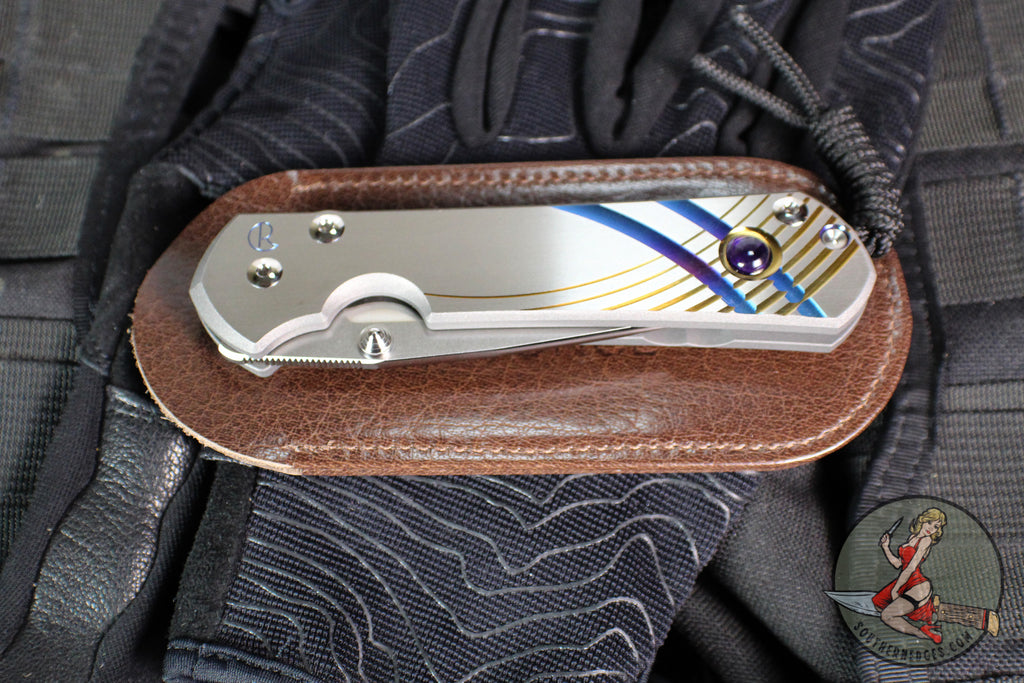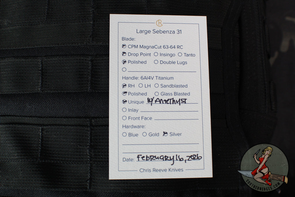 Chris Reeve Large Sebenza 31- Drop Point- Unique Graphic Titanium Handle- Amethyst Cabochon Inlay- Stonewash Magnacut Blade L31-1408-0136 V6