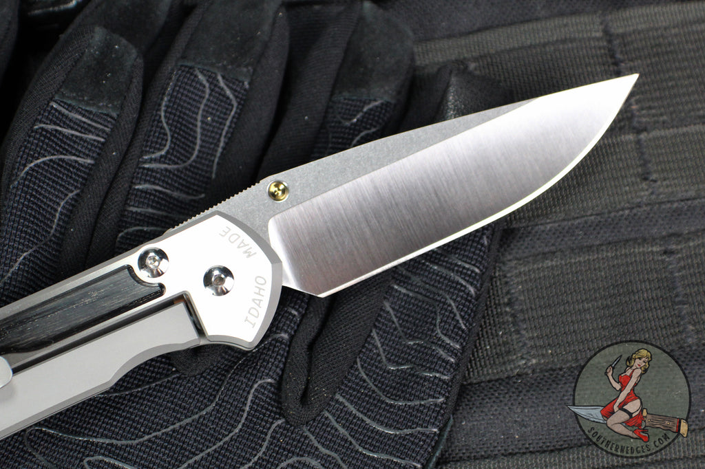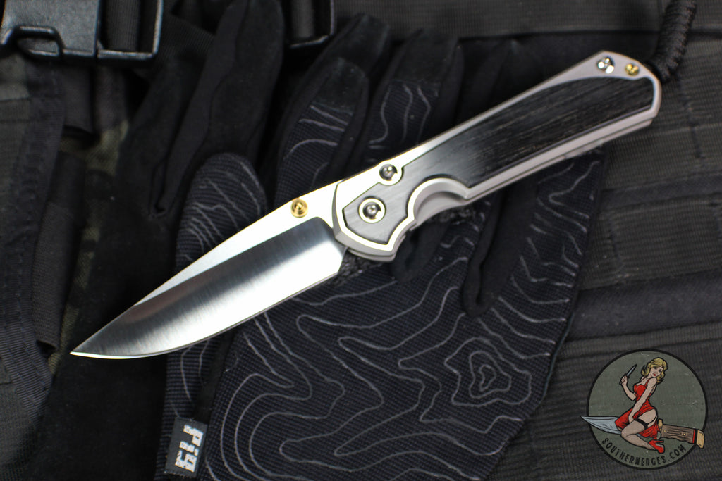 Chris Reeve Large Sebenza 31- Polished Titanium Handle- Polished Drop Point- Bog Oak Wood Inlay- L31-1620 IN CPM-MAGNACUT