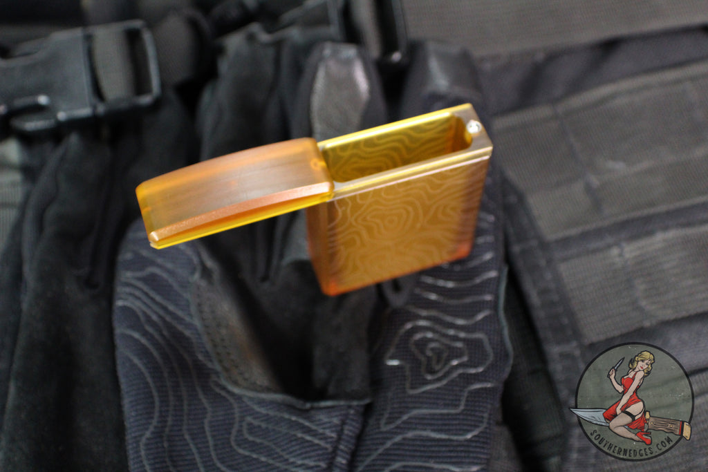 County Comm Ultem TopoVault vertical slide cache storage strong box with slide top. Laser engraved topo pattern and great for edc carry of smaller items.