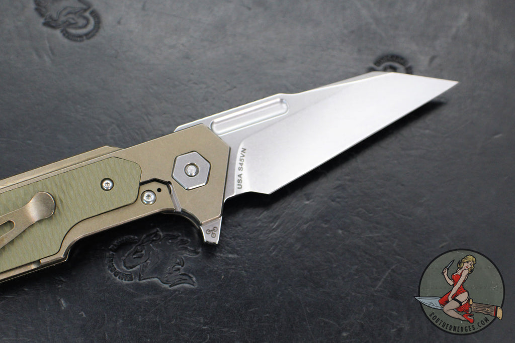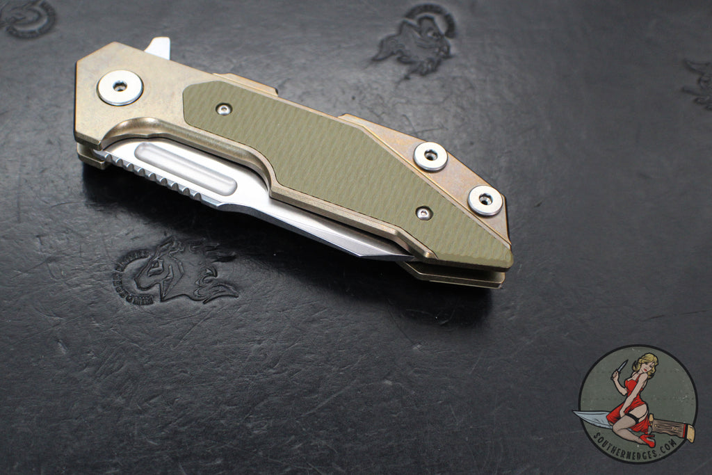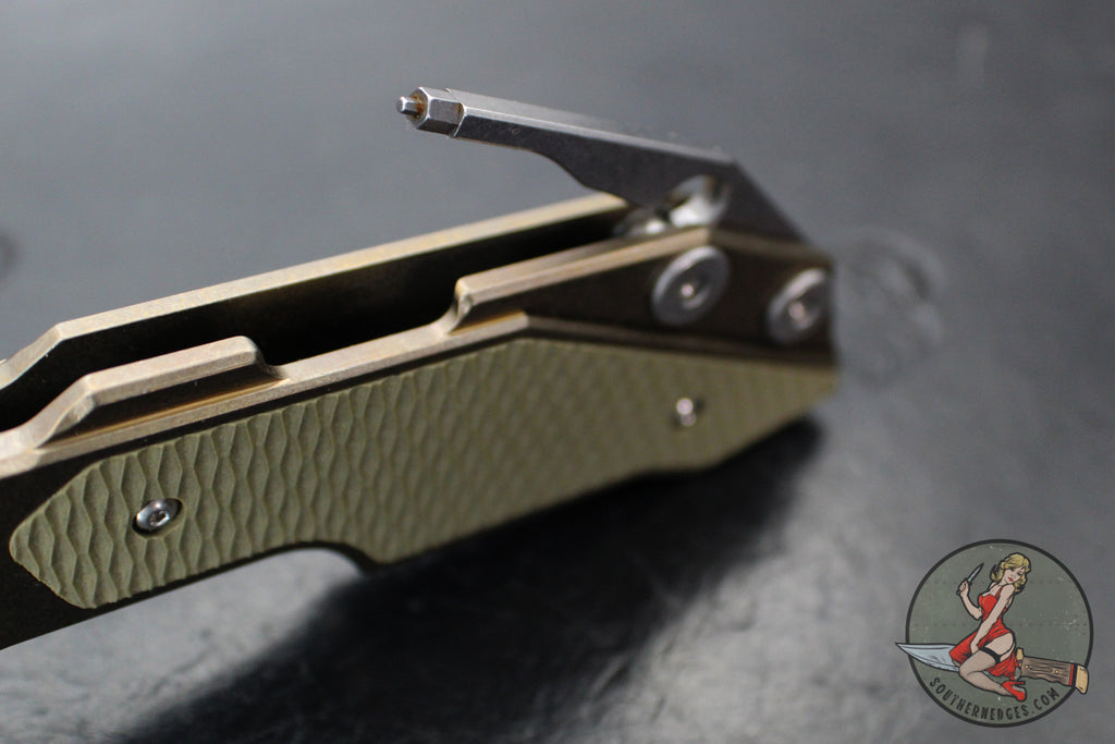 SKU: Fulltrack- Wharncliffe Edge- Stonewash Bronze Titanium And OD Green G-10 Handle- Stonewash Blade