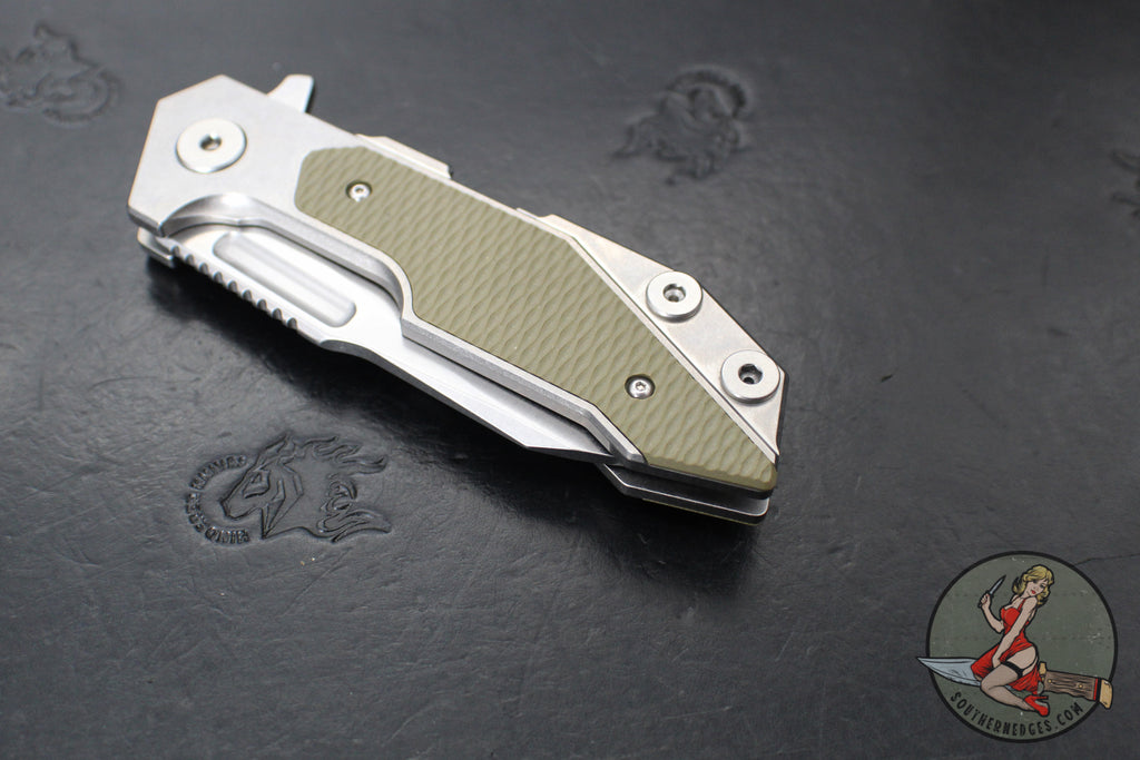 SKU: Fulltrack- Wharncliffe Edge- Stonewash Titanium And OD Green G-10 Handle- Stonewash Blade