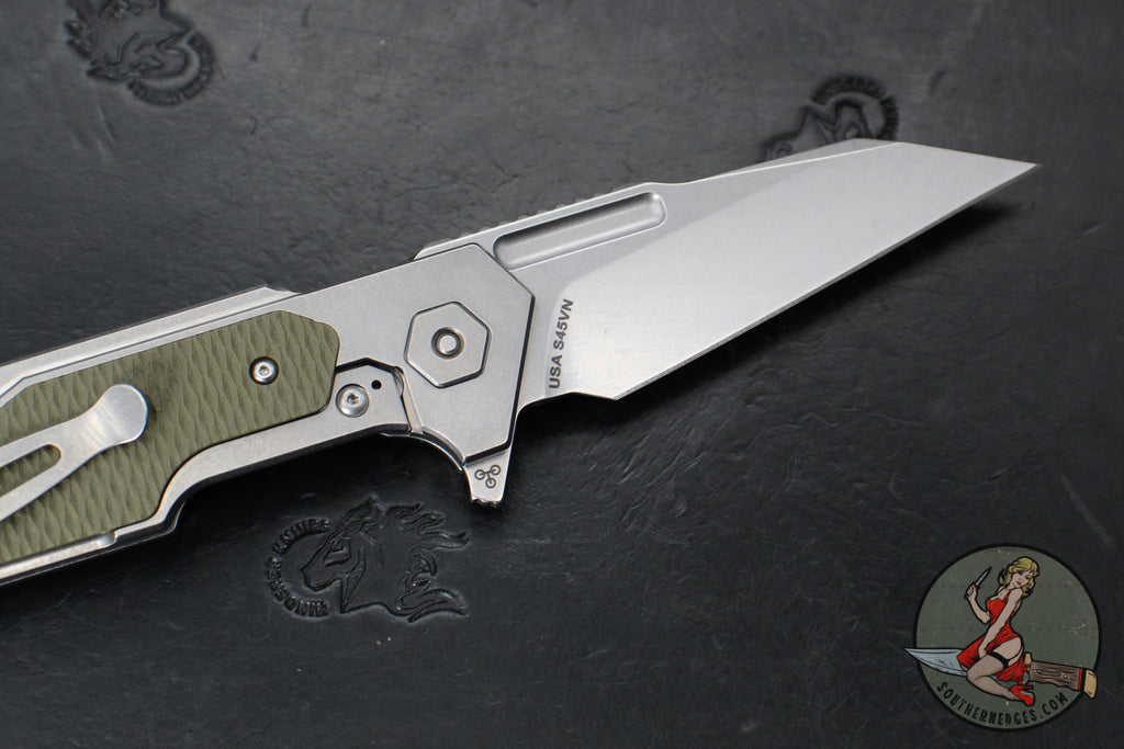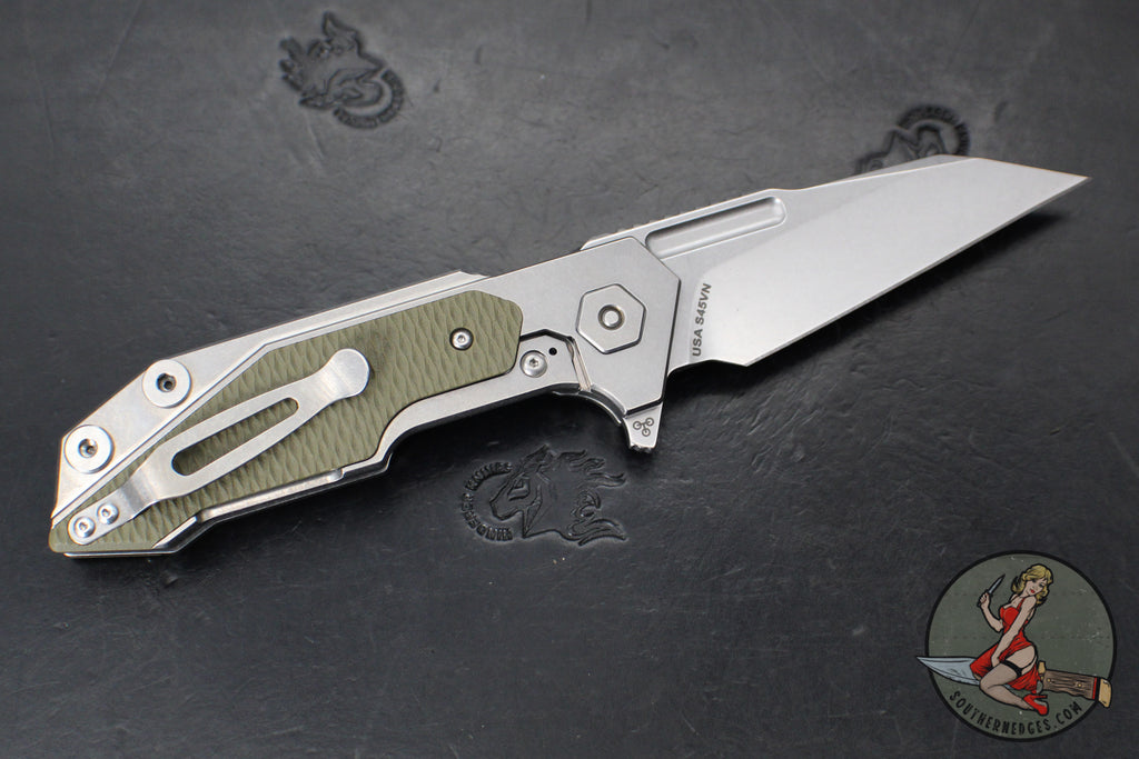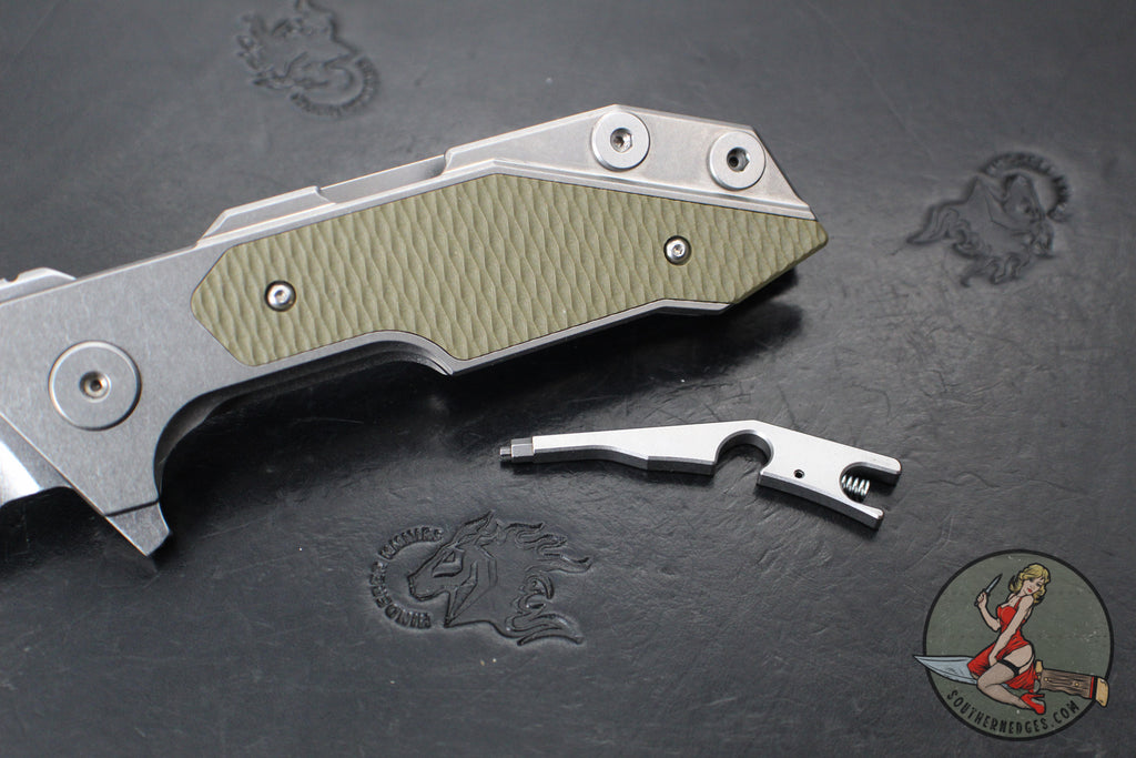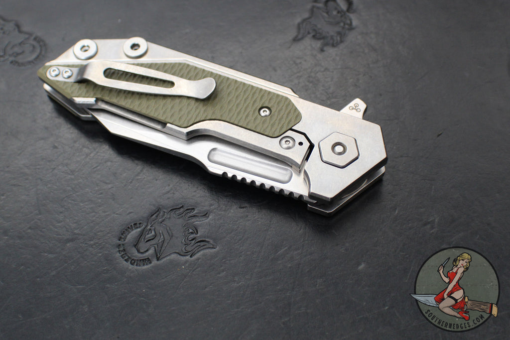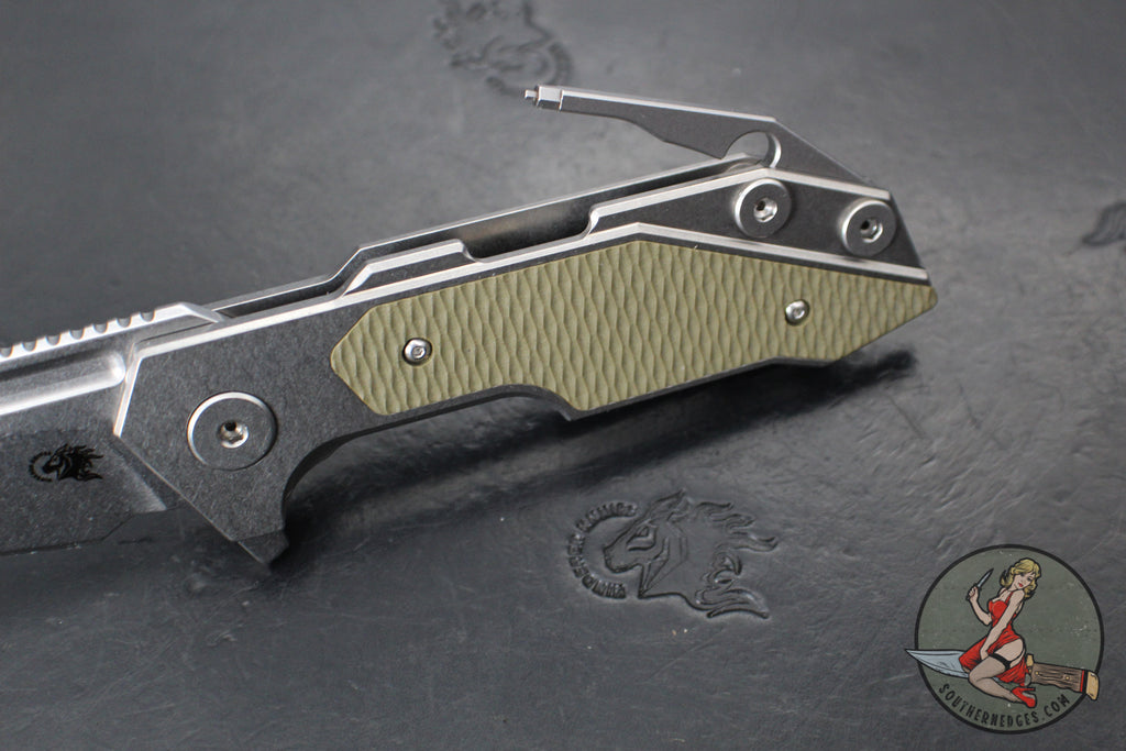 Hinderer Fulltrack- Wharncliffe Edge- Stonewash Titanium And OD Green G-10 Handle- Stonewash Blade