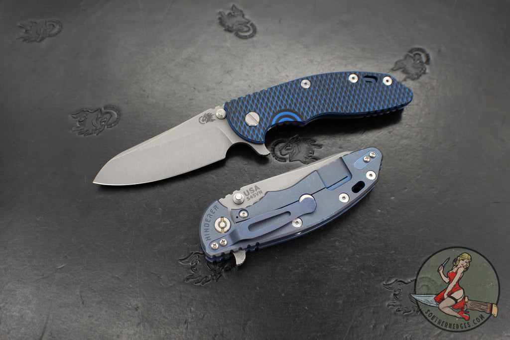 Hinderer XM-18 3.5"- Sheepsfoot- Battle Blue Titanium Handle- Various G-10 Scales- Working Finish S45VN Steel Blade