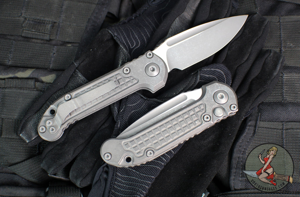 Marfione Select LUDT OTS Knife- Single Edge- Apocalyptic Finished Frag Pattern Titanium Handle- Apocalyptic Plain Edge Blade 1135-10 APFRMS1