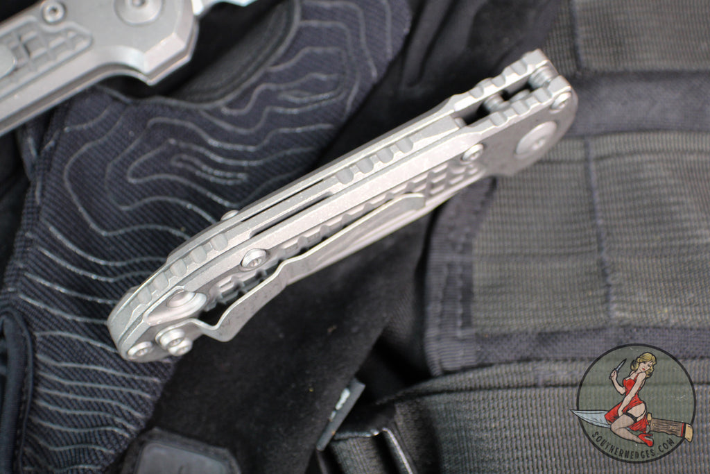 - Handle Color/Material: Apocalyptic Frag Pattern Titanium Handle
